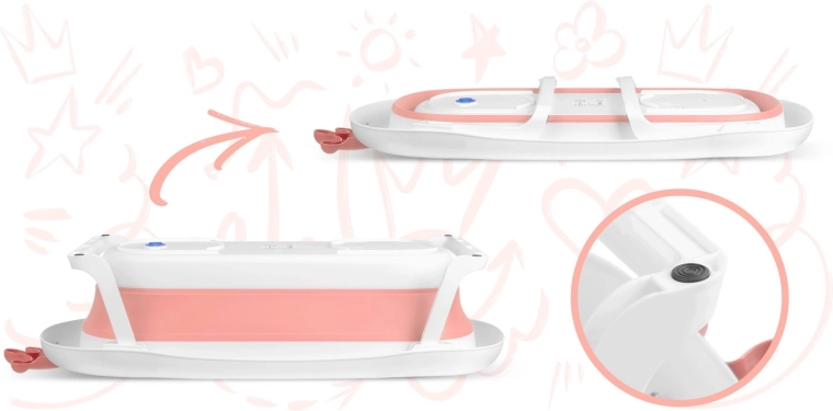 Ova sklopiva dječja kadica u bijelo-ružičastoj izvedbi dizajnirana je za udobno i sigurno kupanje od prvih dana života. Zahvaljujući stabilnim preklopnim nogama i protukliznim elementima ne sklapa se tijekom kupanja i čvrsto stoji na mjestu. Pametni čep u obliku zvjezdice upozori promjenom boje kada voda premaši 38 °C, pa temperaturu imate pod kontrolom.