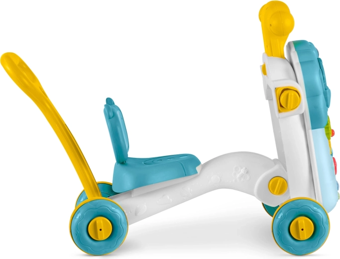Jednostavnom pregradnjom prilagodite igračku trenutačnim potrebama djeteta – od prvih koraka do samostalne vožnje i igre za stolom.