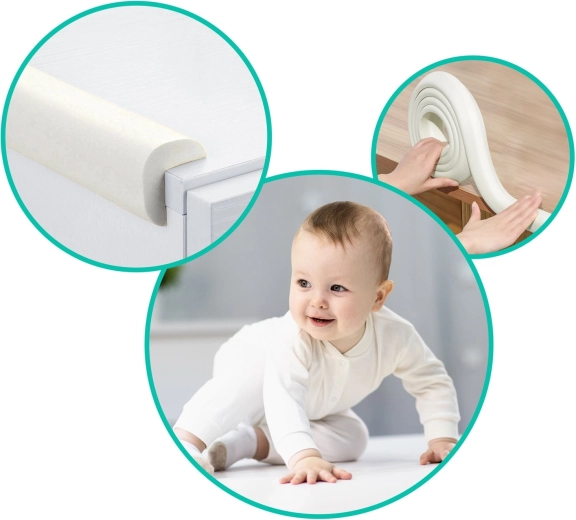 Kvalitetan pjenasti materijal pouzdano omekšava oštre rubove i pomaže zaštititi djecu od udaraca. Elastična konstrukcija prilagođava se ravnim i blago zaobljenim rubovima.
