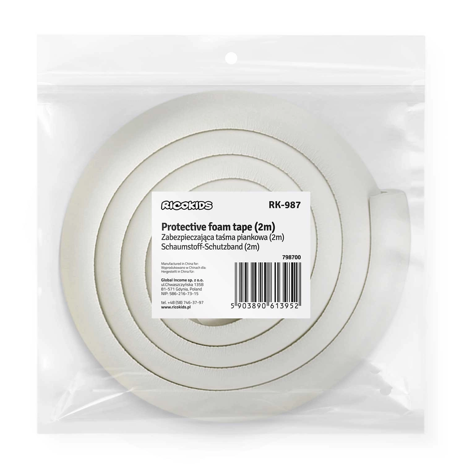 Pjenasti rub RICOKIDS pruža pouzdanu zaštitu oštrih rubova stolova, komoda i polica. Zahvaljujući kvalitetnoj pjeni ugodno je mekan, ali ujedno izdržljiv, a s UV zaštitom dugotrajno zadržava boju. Ugradnja je jednostavna – dovoljno je odmastiti površinu, ukloniti foliju i čvrsto pritisnuti.