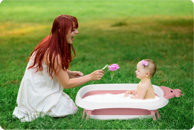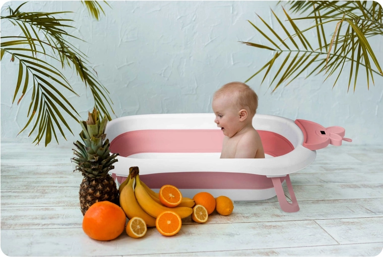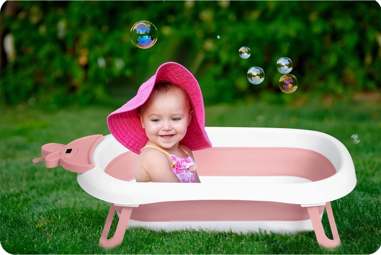 Praktična sklopiva kadica za bebe i djecu s integriranim LCD termometrom za preciznu kontrolu temperature vode. Lagana je, stabilna i ima protuklizne nožice. Šareni ispusni čep upozorava na temperaturu iznad 38 °C. Zahvaljujući kompaktnim dimenzijama lako ju je spremiti kod kuće i ponijeti na put.