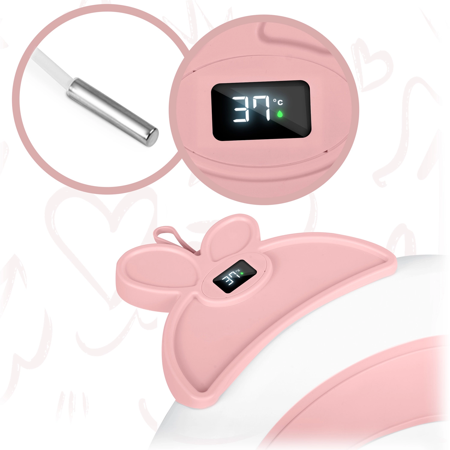 Sklopiva dječja kadica s LCD termometrom, bijela/ružičasta