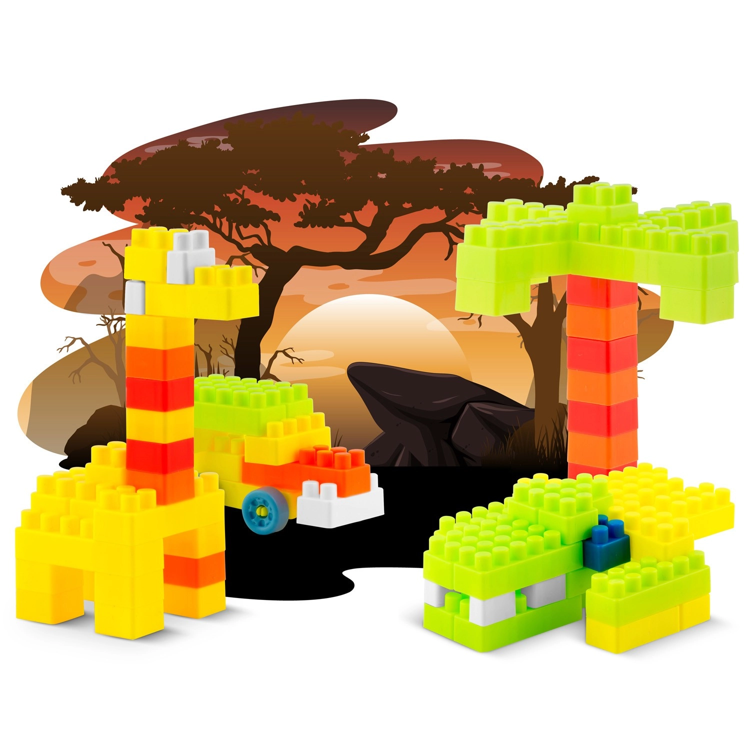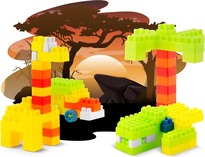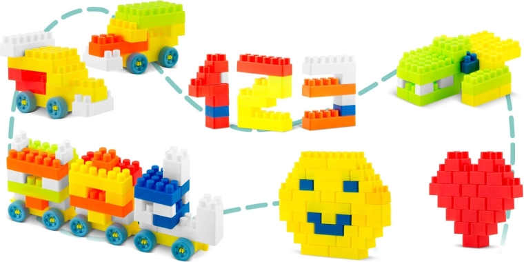 Veliki set raznobojnih kocaka djeci nudi sate kreativne zabave i neprestano nove ideje za građevine i likove.