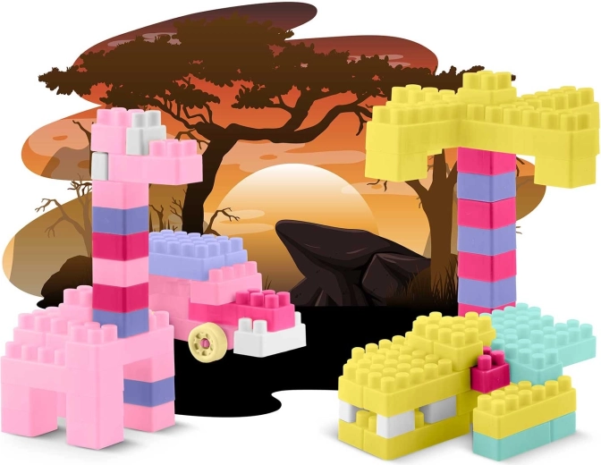 Veliki set građevnih kocaka za djecu donosi beskrajne mogućnosti stvaranja – od vozila i vlakova do brojeva, slova, srca ili smajlića. Pastelne boje, ugodni oblici i zaobljeni rubovi osiguravaju sigurnu i privlačnu igru koja razvija maštu i strpljenje.