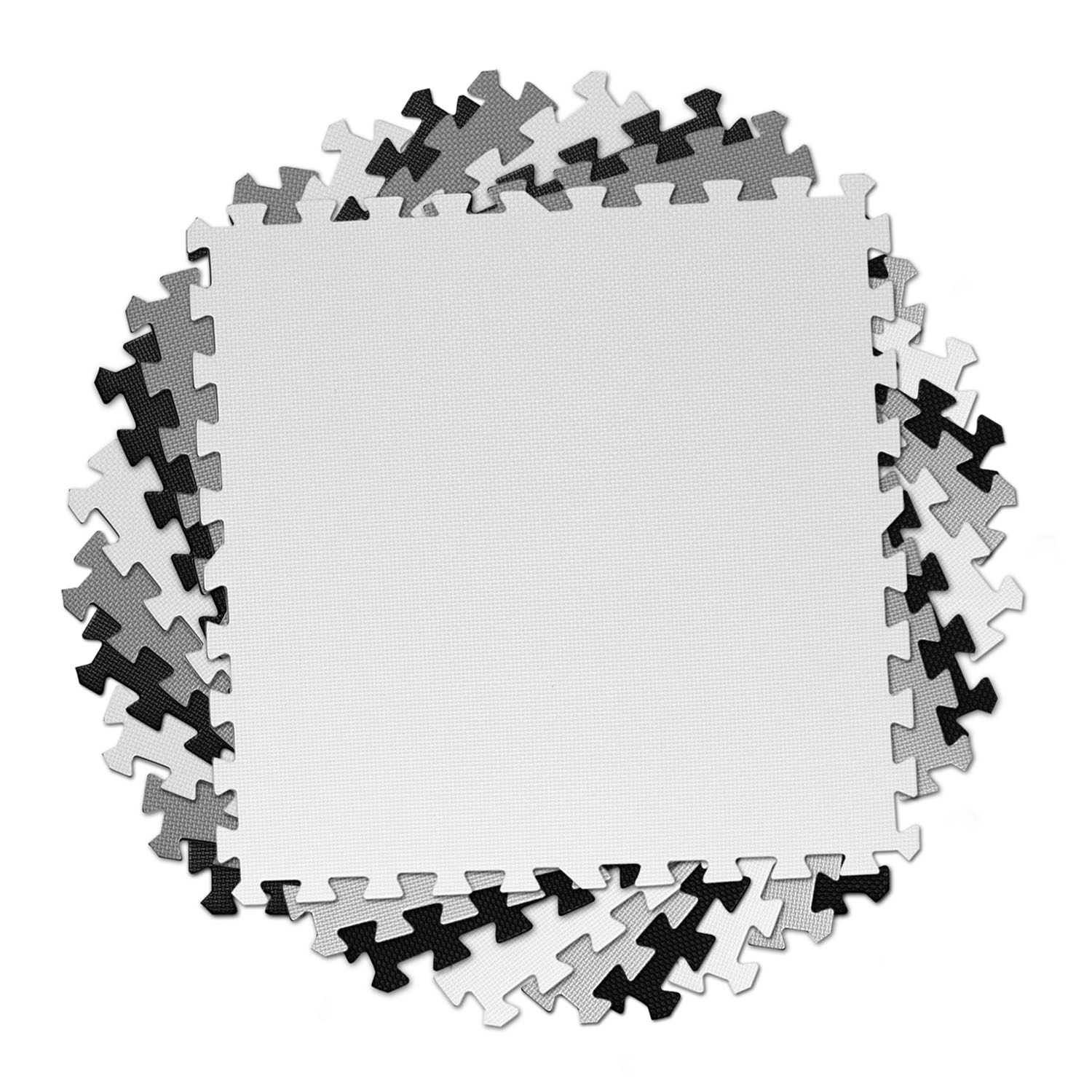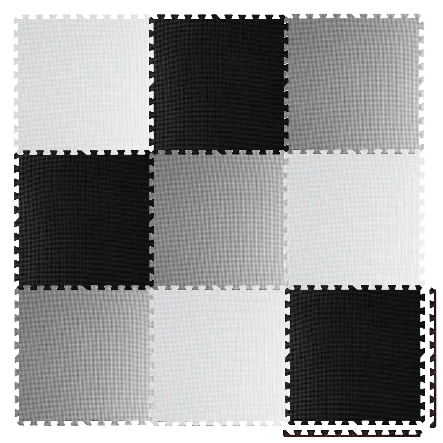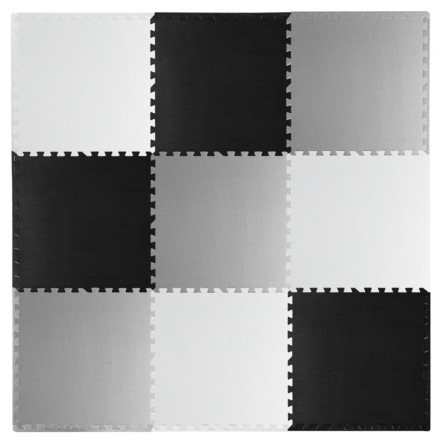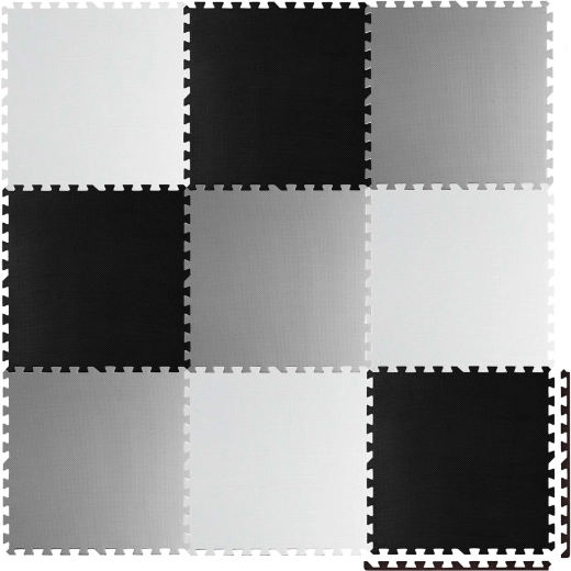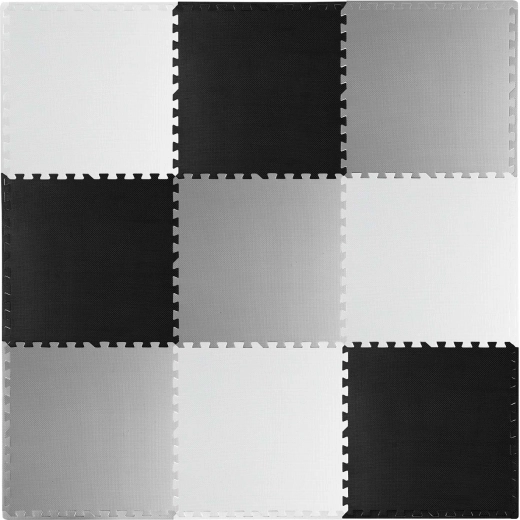 Devet velikih dijelova 60 × 60 cm slaže se kao puzzle – jednostavno ih spojite u šahovnički uzorak, sastavite manje prostirke ili izradite 3D oblike. Protuklizna tekstura stabilno drži na mjestu i povećava sigurnost pri igri. Ne zadržava prašinu ni grinje, stoga je pogodna i za alergičare te za djecu od 0+ mjeseci.
