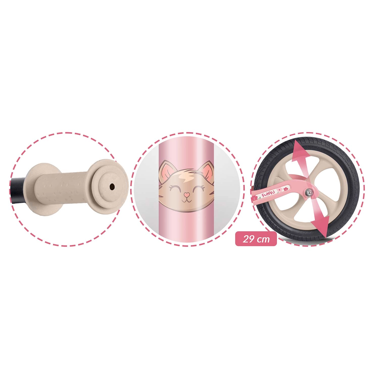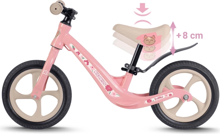 RICOKIDS FUNNU je guralica osmišljena za male istraživače koji žele voziti bez ograničenja. Ultra lagani okvir od magnezijeve legure olakšava rukovanje djeci i roditeljima, dok bezodržavni EVA kotači jamče mirnu vožnju bez probušivanja na travi, asfaltu i šljunku. Zahvaljujući neprekidno podesivoj visini sjedla guralica raste zajedno s vašim djetetom.