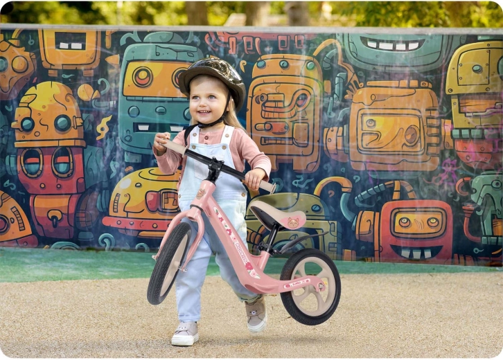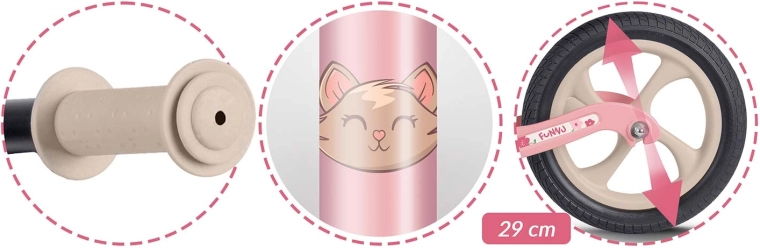 Sigurnost i udobnost na prvom su mjestu: protuklizne ručke s graničnicima pružaju kontrolu nad upravljanjem, mekano pjenasto sjedalo čuva leđa i stražnjicu, a široka upravljačka šipka pomaže održati stabilnost. Guralica potiče prirodan razvoj ravnoteže, koordinacije i koncentracije – prijelaz na klasičan bicikl s pedalama tada je dječja igra.