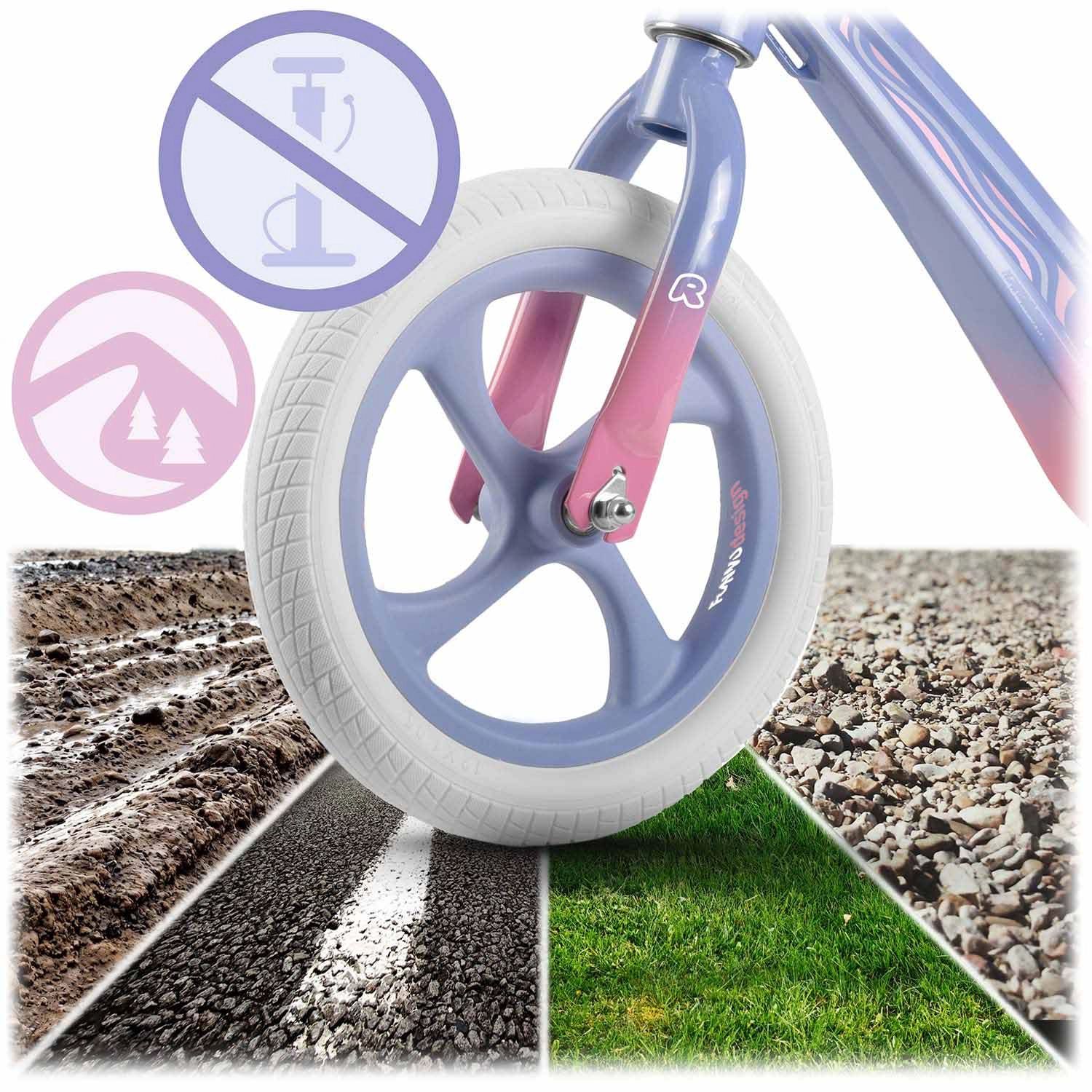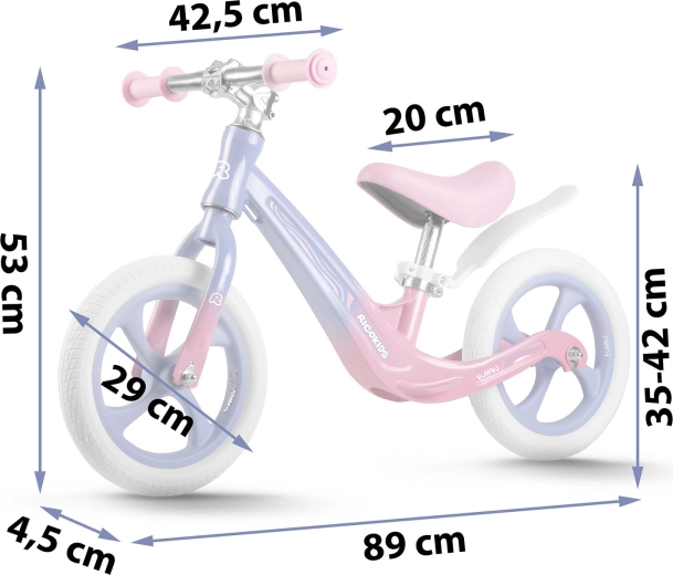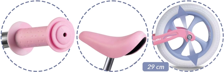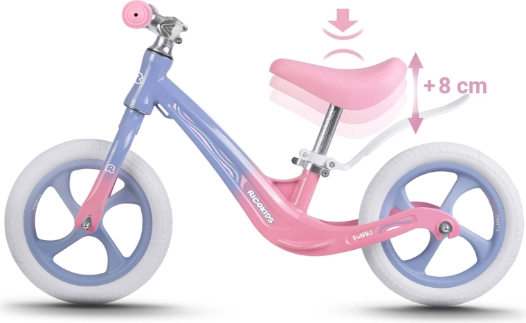 Ricokids Funnu je guralica osmišljena kako bi djeci olakšala prijelaz na klasični bicikl s pedalama. Magnezijev okvir pruža iznimnu lakoću i čvrstoću, dok EVA pjenaste gume ne zahtijevaju pumpanje i otporne su na probijanje, vlagu i niske temperature. Ergonomsko sjedalo s mekom podstavom i široke mogućnosti podešavanja visine nude udobnost u svakoj fazi rasta.