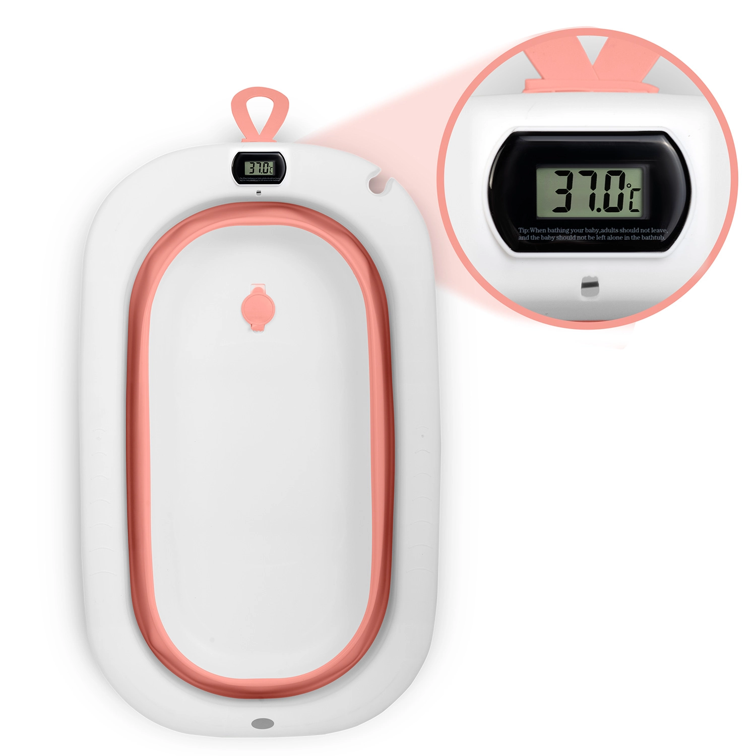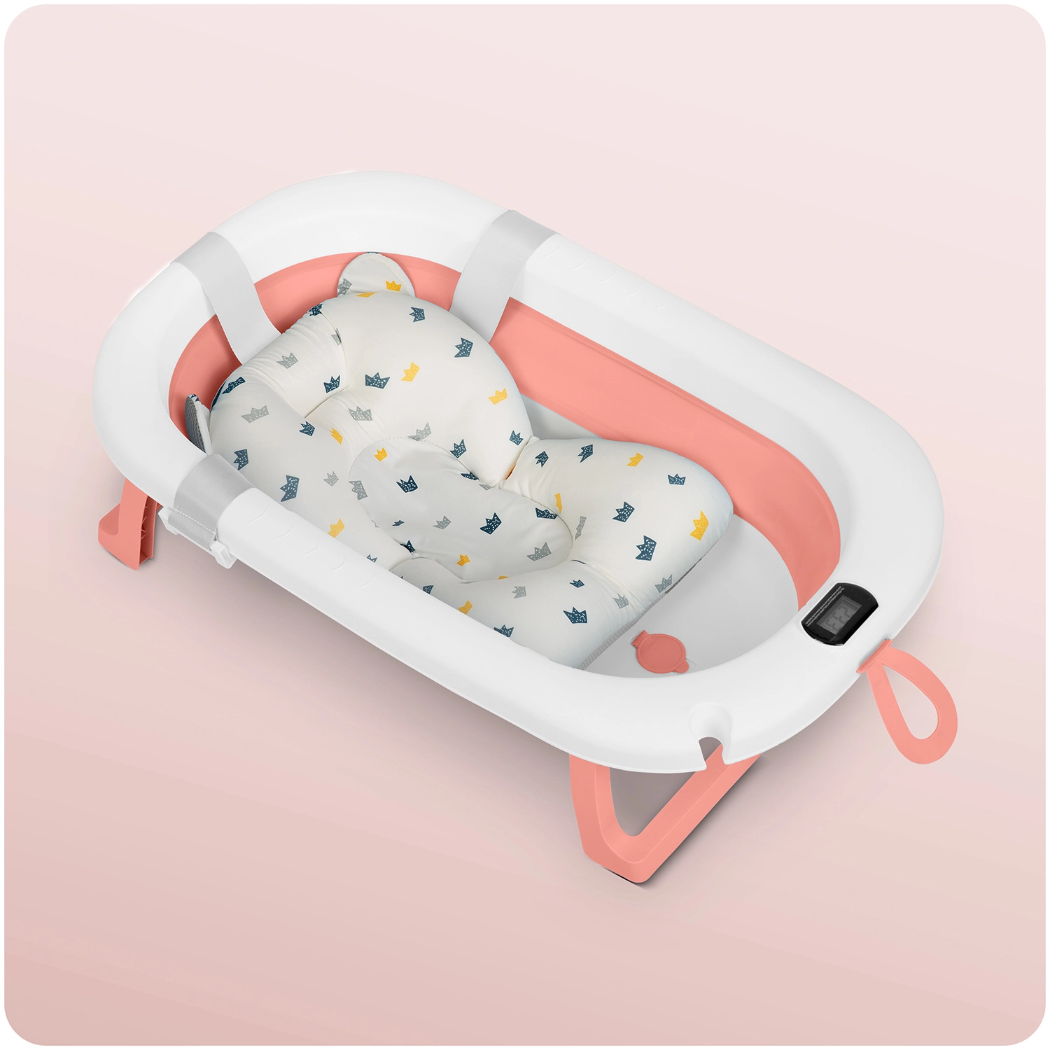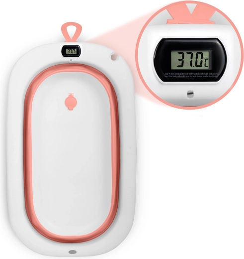 Sklopiva dječja kadica s termometrom i umetkom, ružičasto-bijela