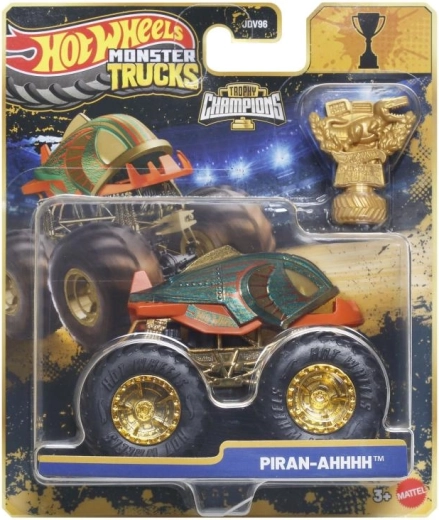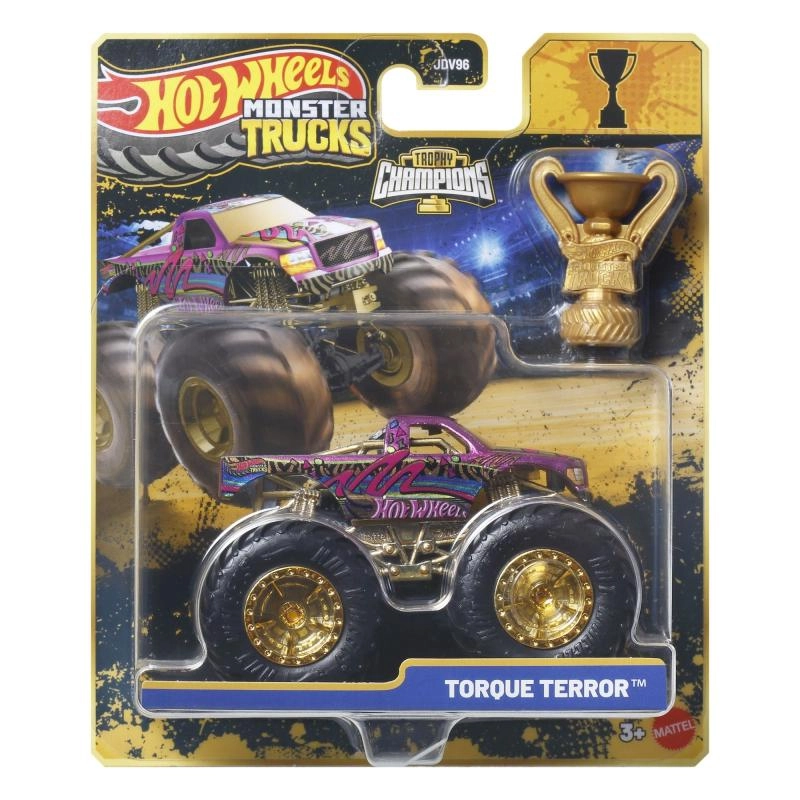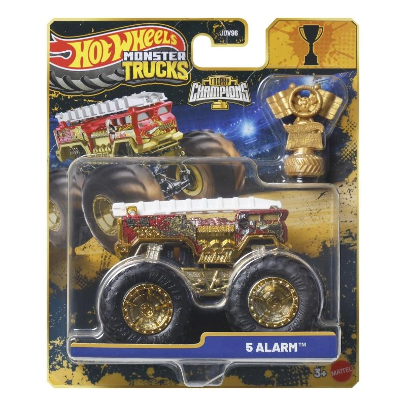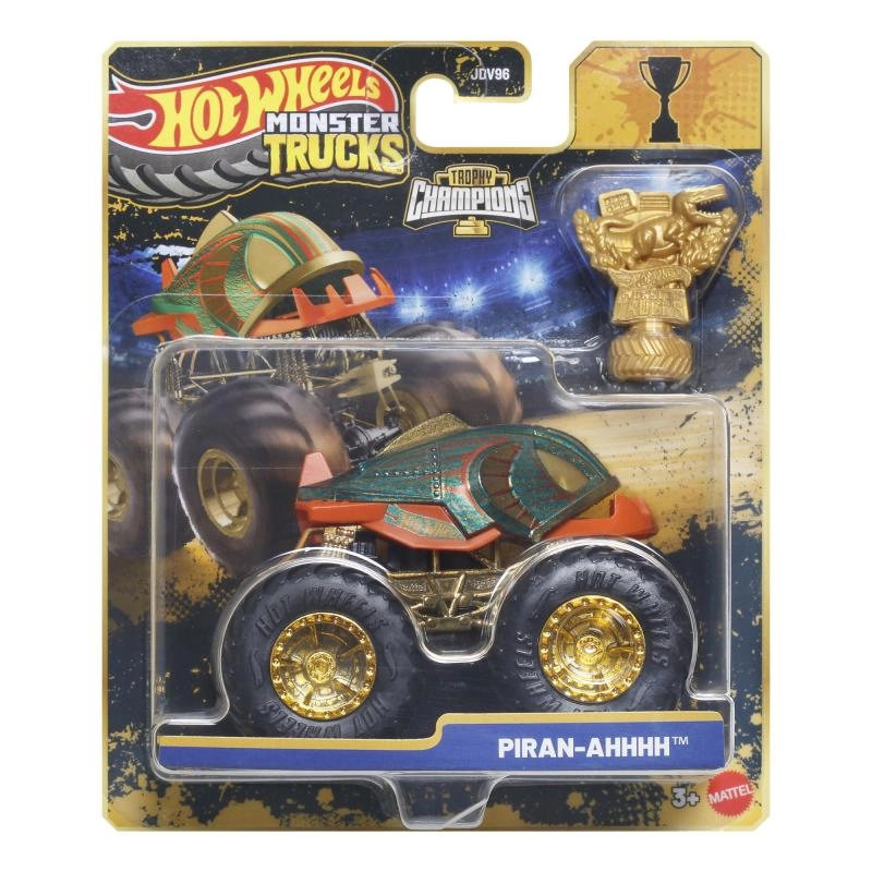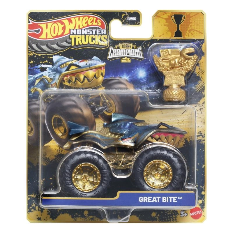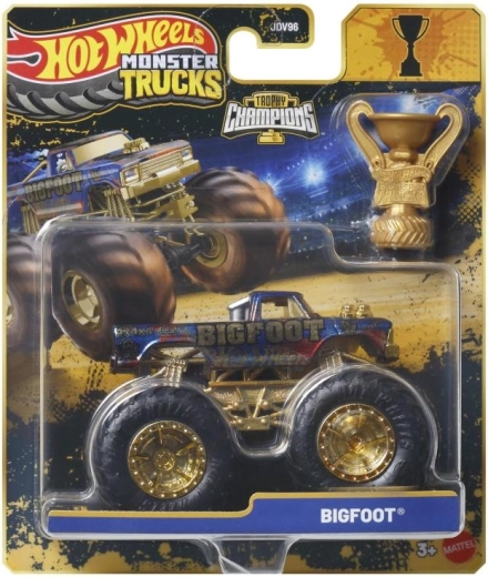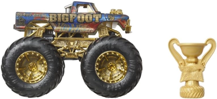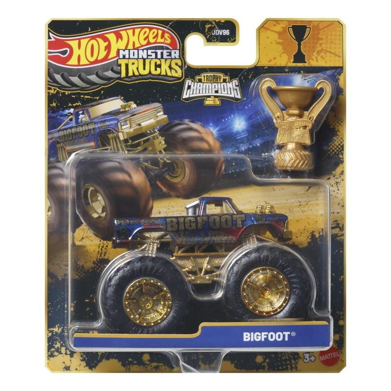 Posebna memorijalna kolekcija Hot Wheels Monster Trucks Trophy Champions donosi ikonični BIGFOOT u premium izvedbi. Robusna konstrukcija, veliki profilirani kotači i zlatni detalji naglašavaju legendarni izgled, dok priloženi trofej svakom natjecanju daje pravu atmosferu. Model je idealan i za igru i za izlaganje u kolekciji.