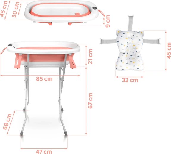 Uživajte u mirnom kupanju bez brige. Sklopiva kada RICOKIDS nudi povišeno, stabilno postolje zahvaljujući čvrstom stalku, mekanu potporu za glavicu i leđa novorođenčeta te precizno praćenje temperature vode elektroničkim termometrom s LCD zaslonom. Pametni čep dodatno mijenja boju pri prekoračenju 38 °C, pa ćete idealnu temperaturu uvijek imati na oku.