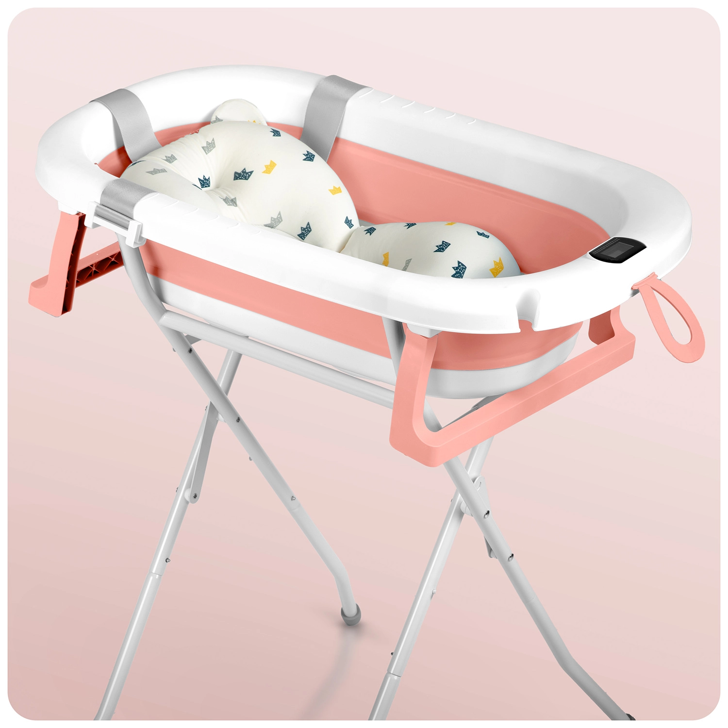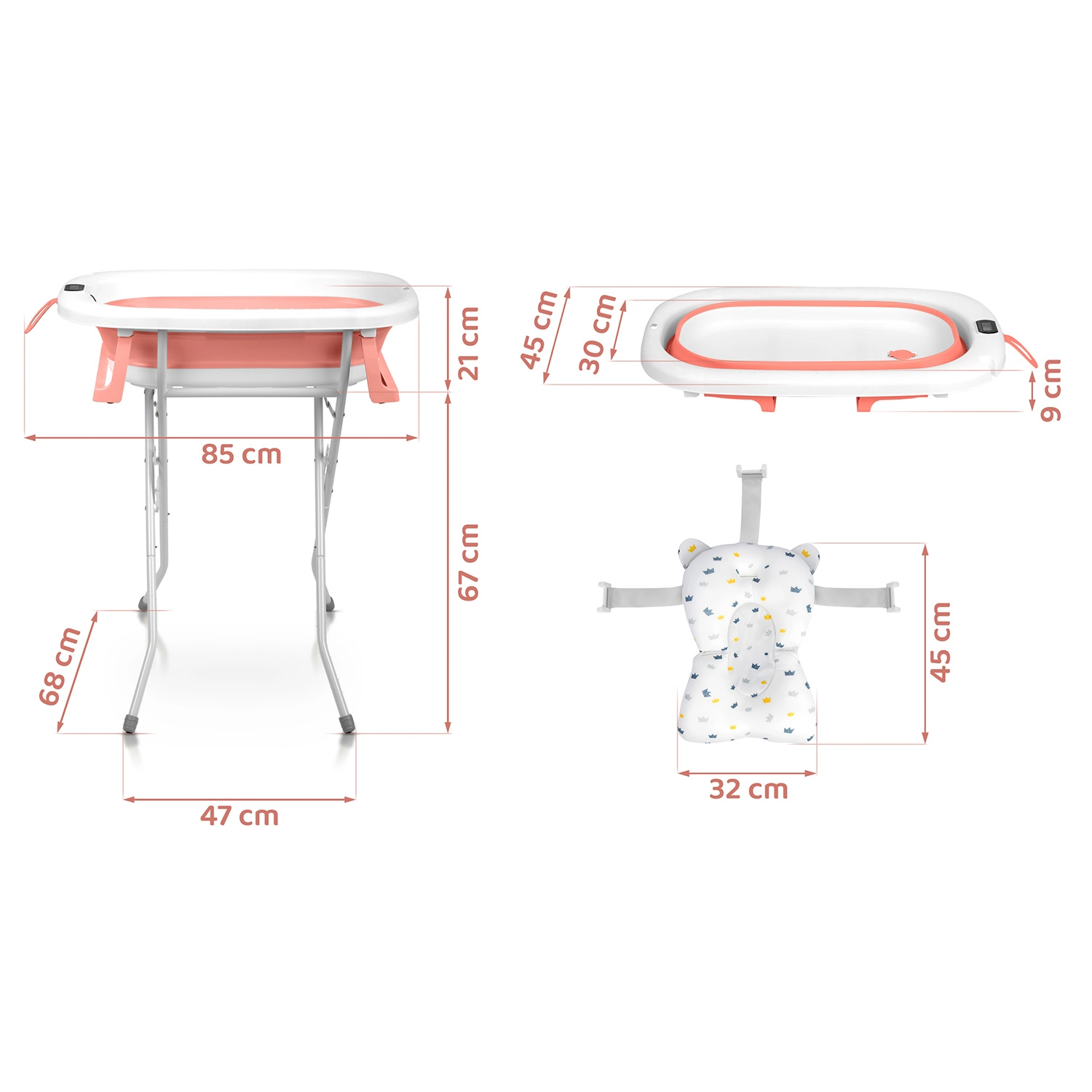 Sklopiva dječja kada sa stalkom, termometrom i umetkom RICOKIDS bijelo‑roza