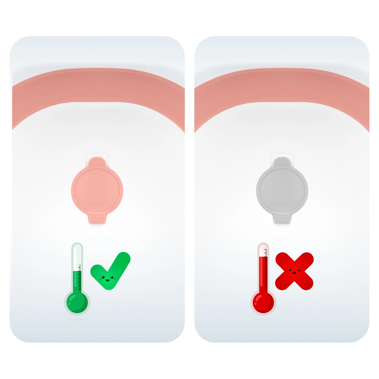 Temperaturu vode prati precizan elektronički termometar s čitljivim zaslonom. Čep se pri prekoračenju 38 °C oboji u bijelo – jasan signal da je voda prevruća.