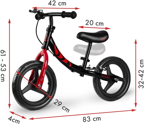 Poljski dizajn s naglaskom na detalje ispunjava europske sigurnosne standarde. Protuklizne ručke sa stoperima osiguravaju siguran prihvat, dok se ergonomsko sjedalo s glatkim podešavanjem visine prilagođava rastu djeteta. Stražnja kočnica olakšava sigurno zaustavljanje i povećava kontrolu nad vožnjom.