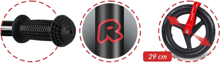 Lagana i okretna guralica Ricokids Fun Adventure idealna je za prve vozačke doživljaje. Izdržljiv čelični okvir, nepoderive EVA gume promjera 29 cm, ergonomsko mekano sjedalo s podešavanjem od 10 cm i stražnja kočnica potiču razvoj ravnoteže i koordinacije te osiguravaju sigurnu i udobnu vožnju u kući i na otvorenom.