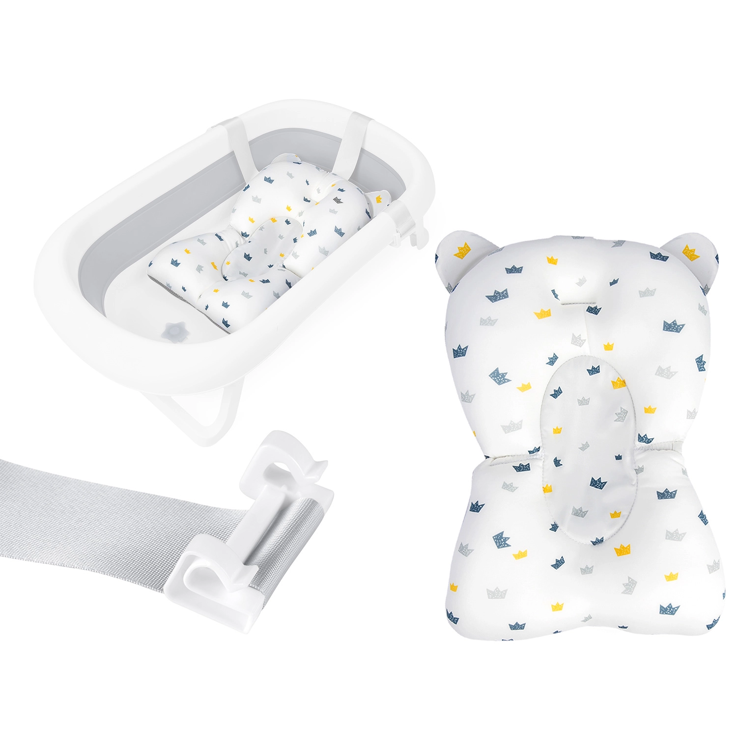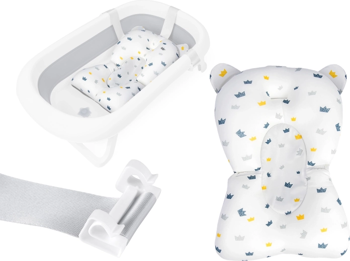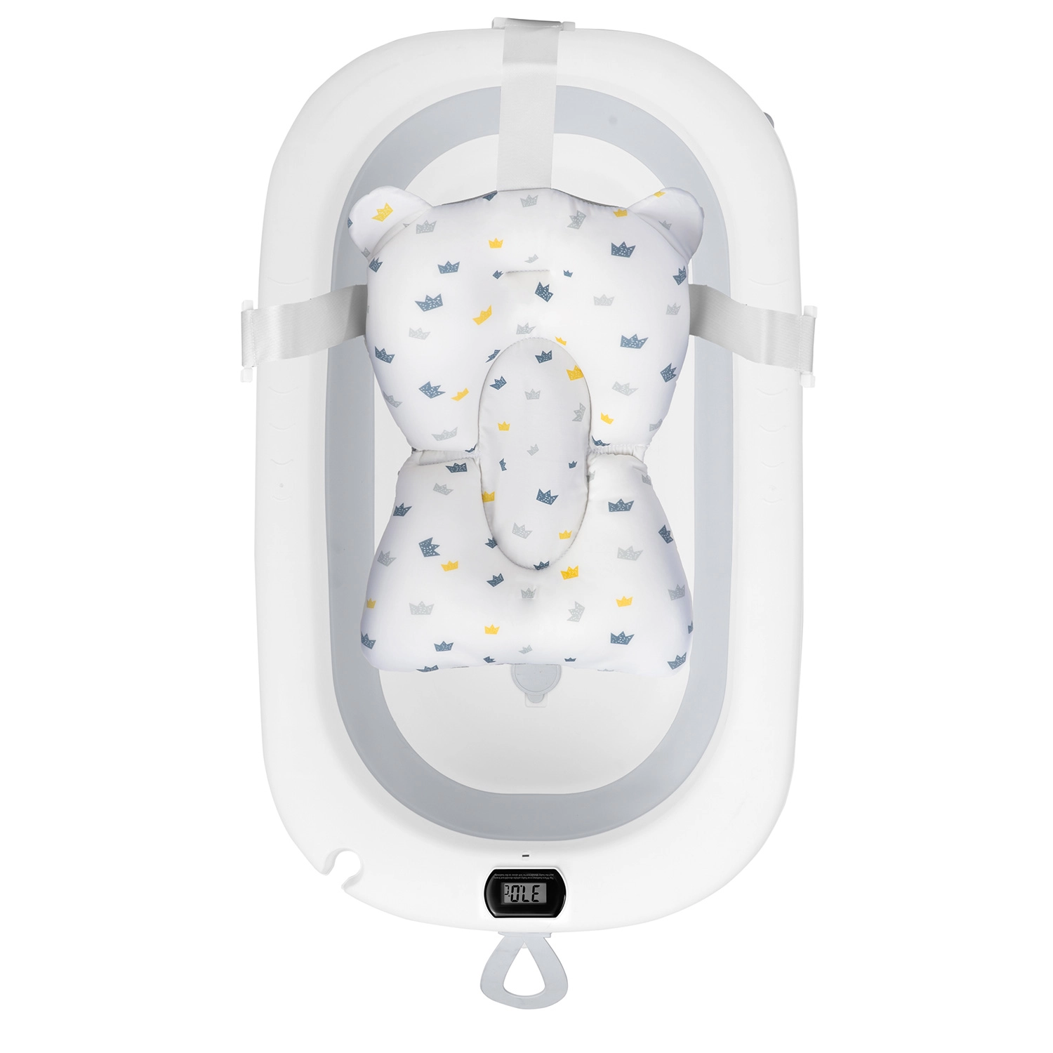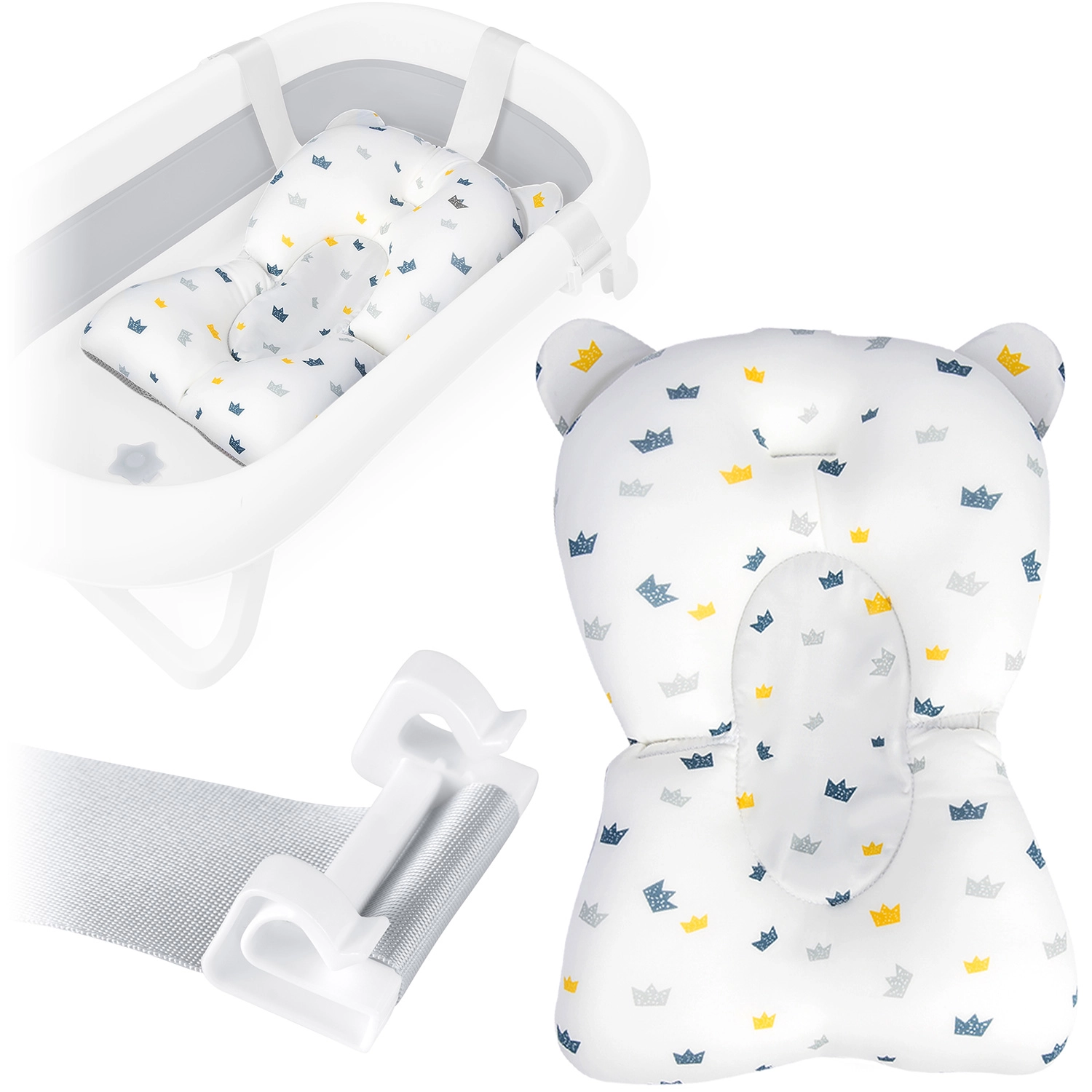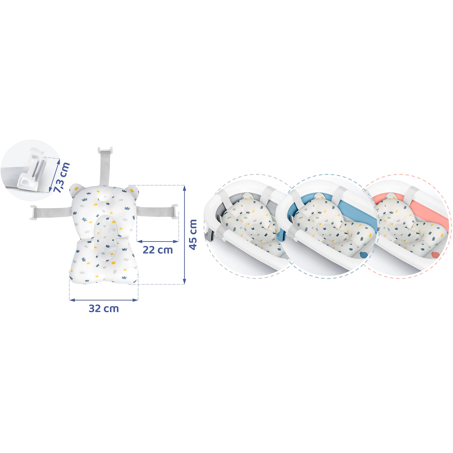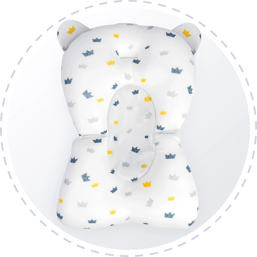 Meko, pahuljasto podstavljenje nježno obgrli bebu i stabilizira njen položaj u vodi kako bi kupanje bilo mirno i sigurno.