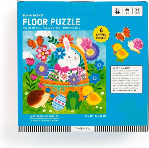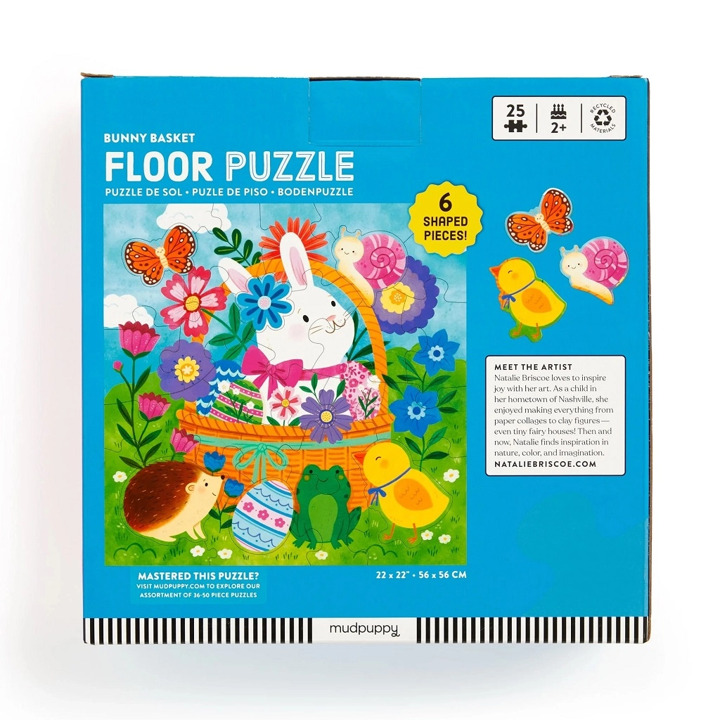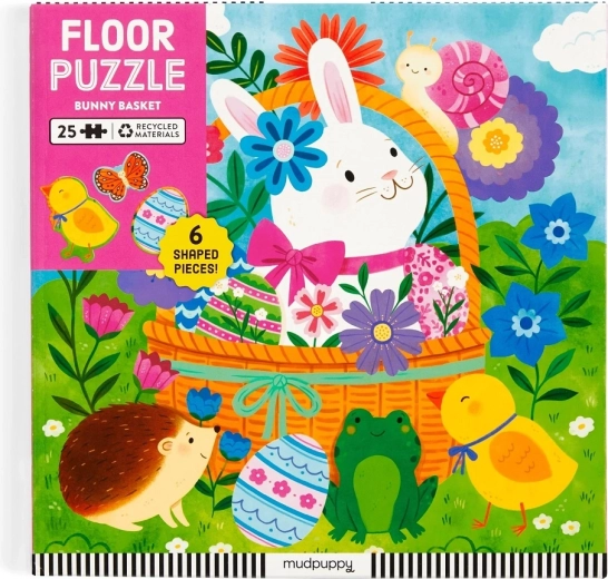 Uživajte u proljetnom slaganju s podnom slagalicom Mudpuppy Uskršnji zeko! Sadrži 25 velikih dijelova uključujući 6 oblikovanih komada, koje djeca lako mogu uhvatiti. Slagalica je izrađena od recikliranih materijala, potiče finu motoriku i prostornu maštu te je idealna za djecu od 2 godine.