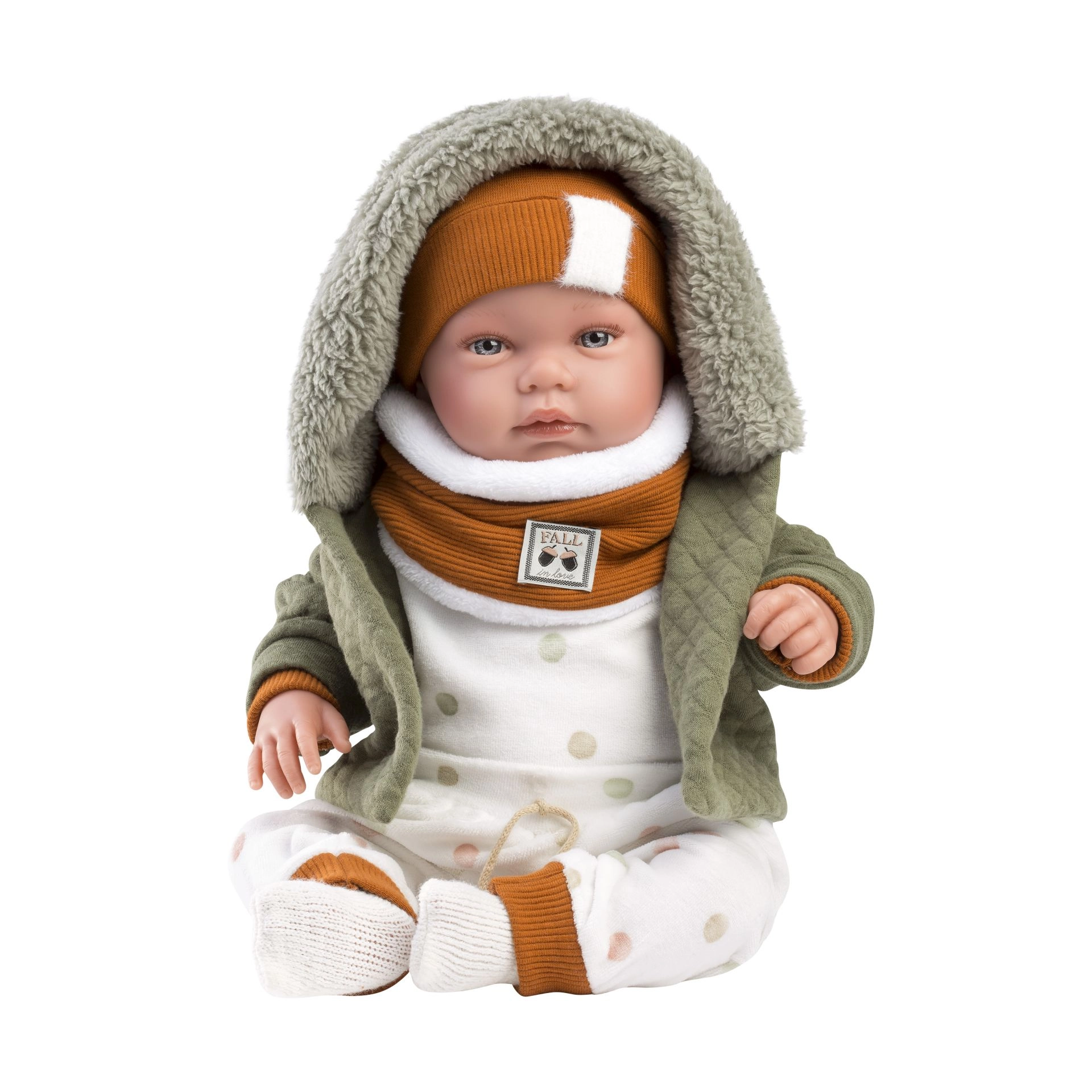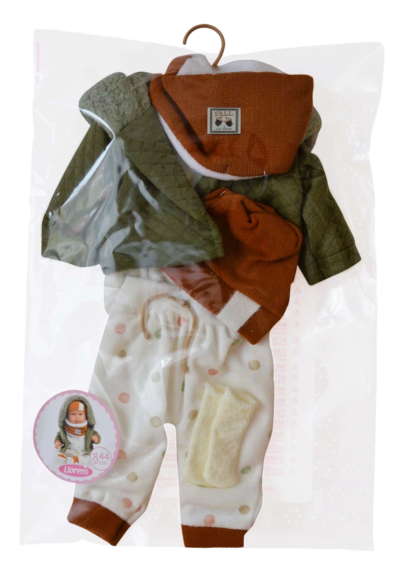 Stilski 6-dijelni komplet odjeće za lutku New Born veličine 43–45 cm pretvara svaku igru u realističan doživljaj. Set je ručno izrađen u Španjolskoj, zbog čega se ističe kvalitetom i detaljima. Praktično pakiranje s vješalicom olakšava spremanje. Idealno za djecu od 3 godine.