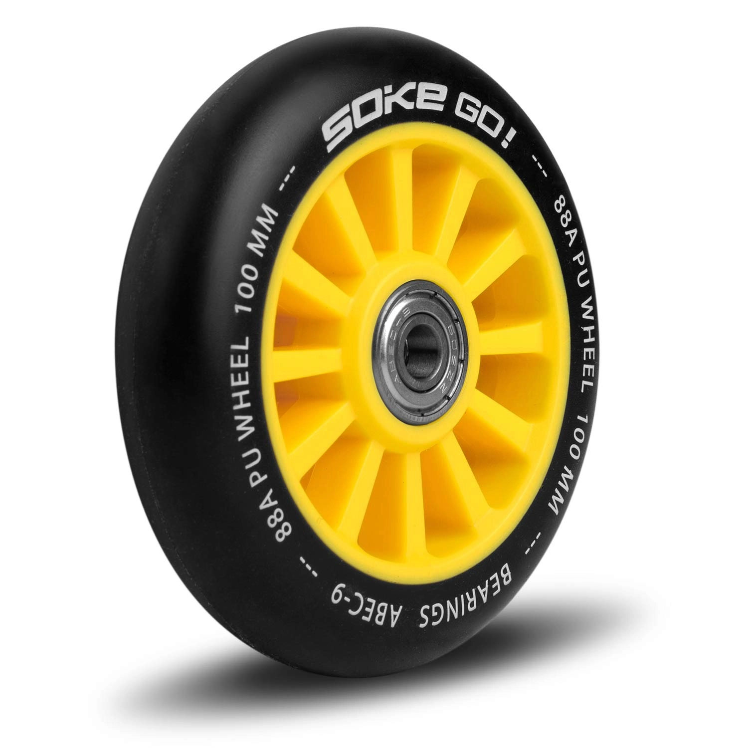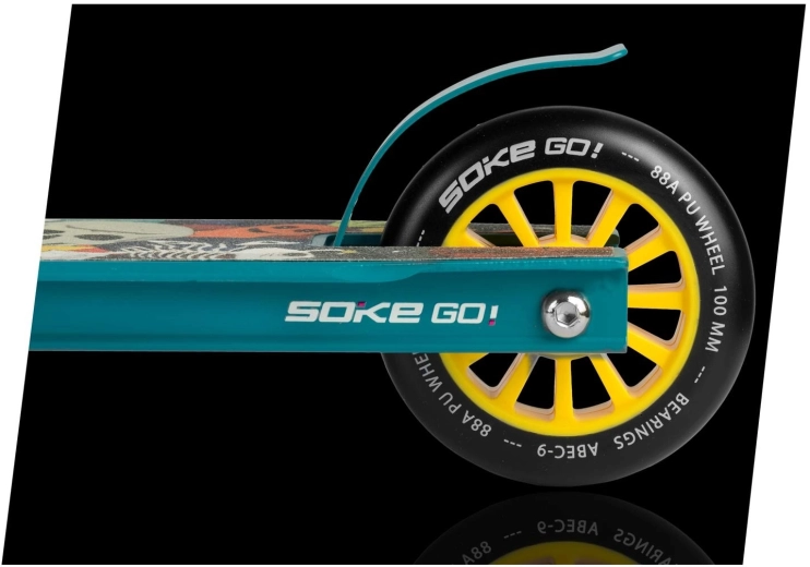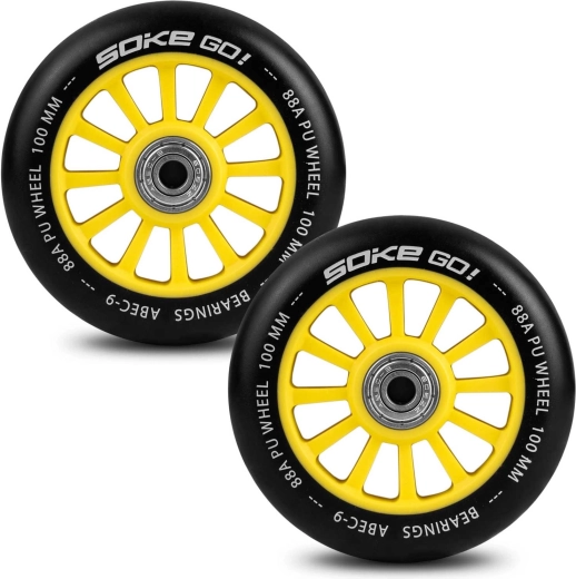 Žuti SOKE kotači 100 mm donose kombinaciju brzine, izdržljivosti i sigurnog gripa. Poliuretan s tvrdoćom 88A idealan je za tvrde podloge poput asfalta, dok se ležajevi ABEC-9 brinu za gladak i brz start.