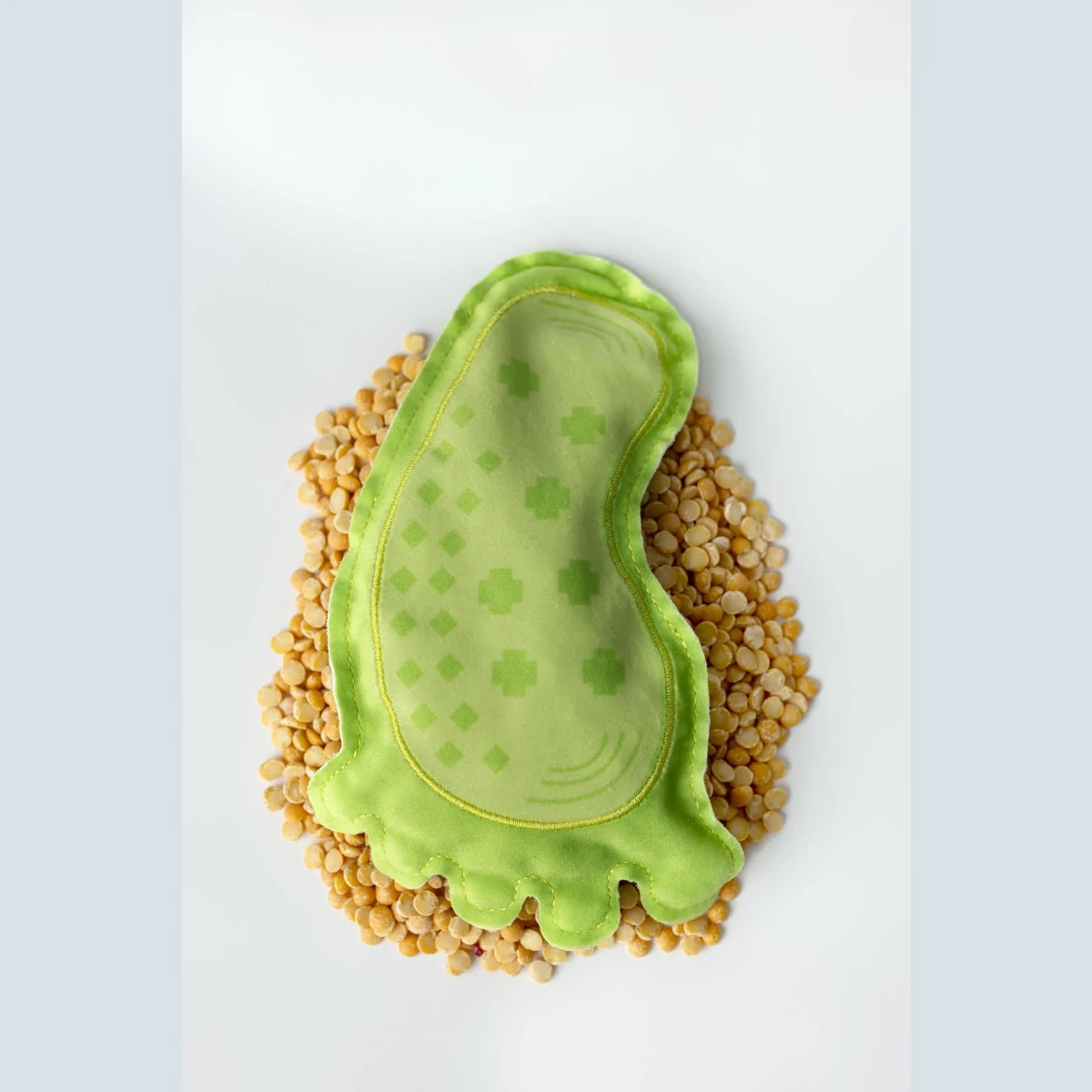 Svaki jastučić nudi drugačiju teksturu: ljuske heljde, laneno sjeme, koštice trešnje, riža, soja, heljda, proso i grašak. Djeca prepoznaju različite površine i jačaju taktilnu percepciju.