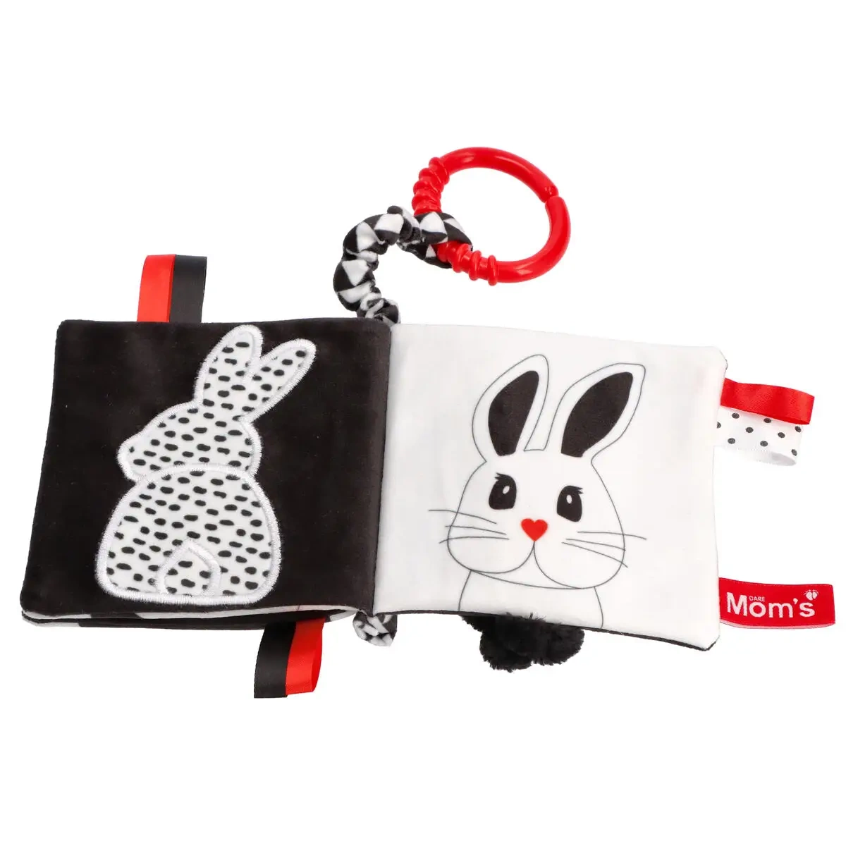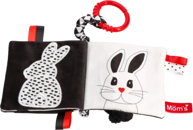 Uz ovu senzoričku knjižicu beba uči doživljavati svijet od prvih dana. Visok kontrast crne, bijele i crvene potiče vizualnu percepciju i pažnju. Na stranicama dijete otkriva simpatične životinjice i njihove oblike, vježba prepoznavanje oblika te razvija vizualnu percepciju i prve vještine povezane s govorom.