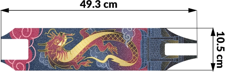 Grip traka SOKE Pro Dragon vašem freestyle romobilu daje sigurnost, udobnost i stil. Gruba brusna površina osigurava pouzdanu trakciju obuće čak i pri zahtjevnim trikovima, dok čvrst ljepljivi sloj drži traku na mjestu. Zahvaljujući univerzalnoj širini i duljini lako se prilagođava većini dasaka.
