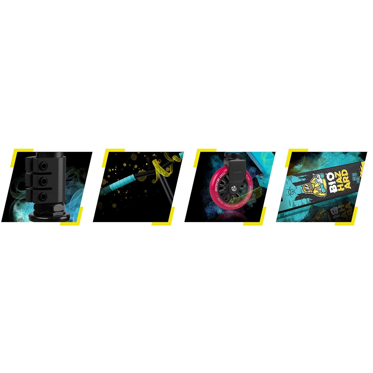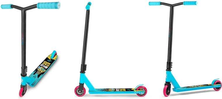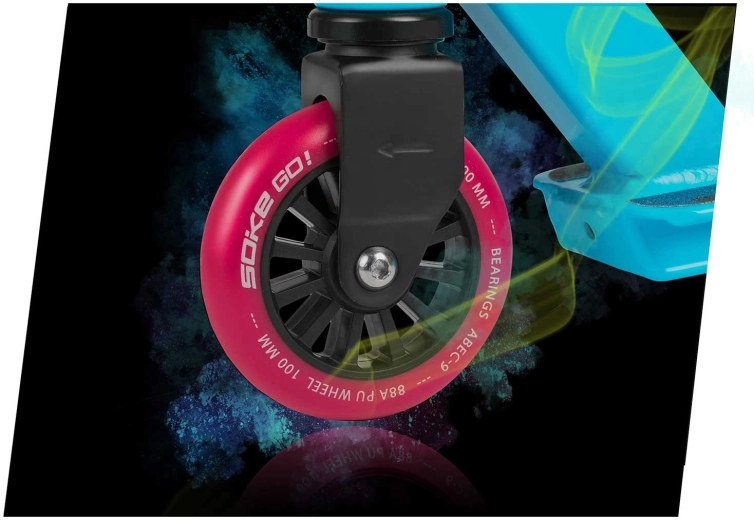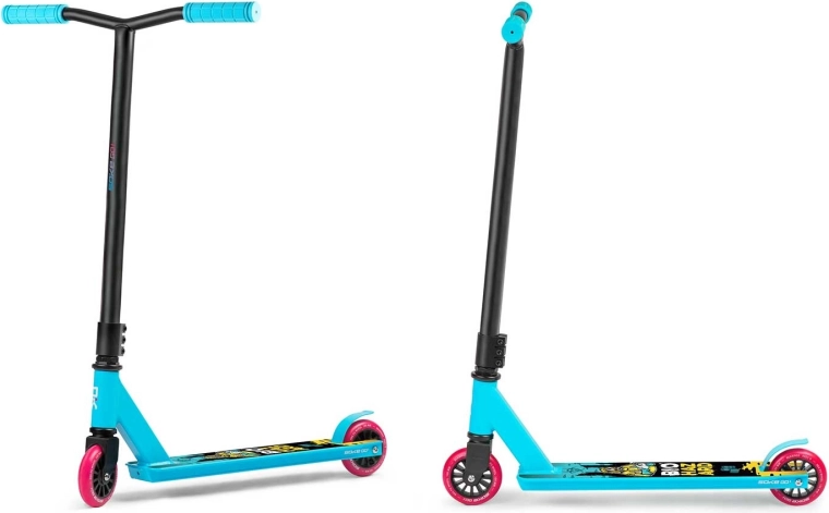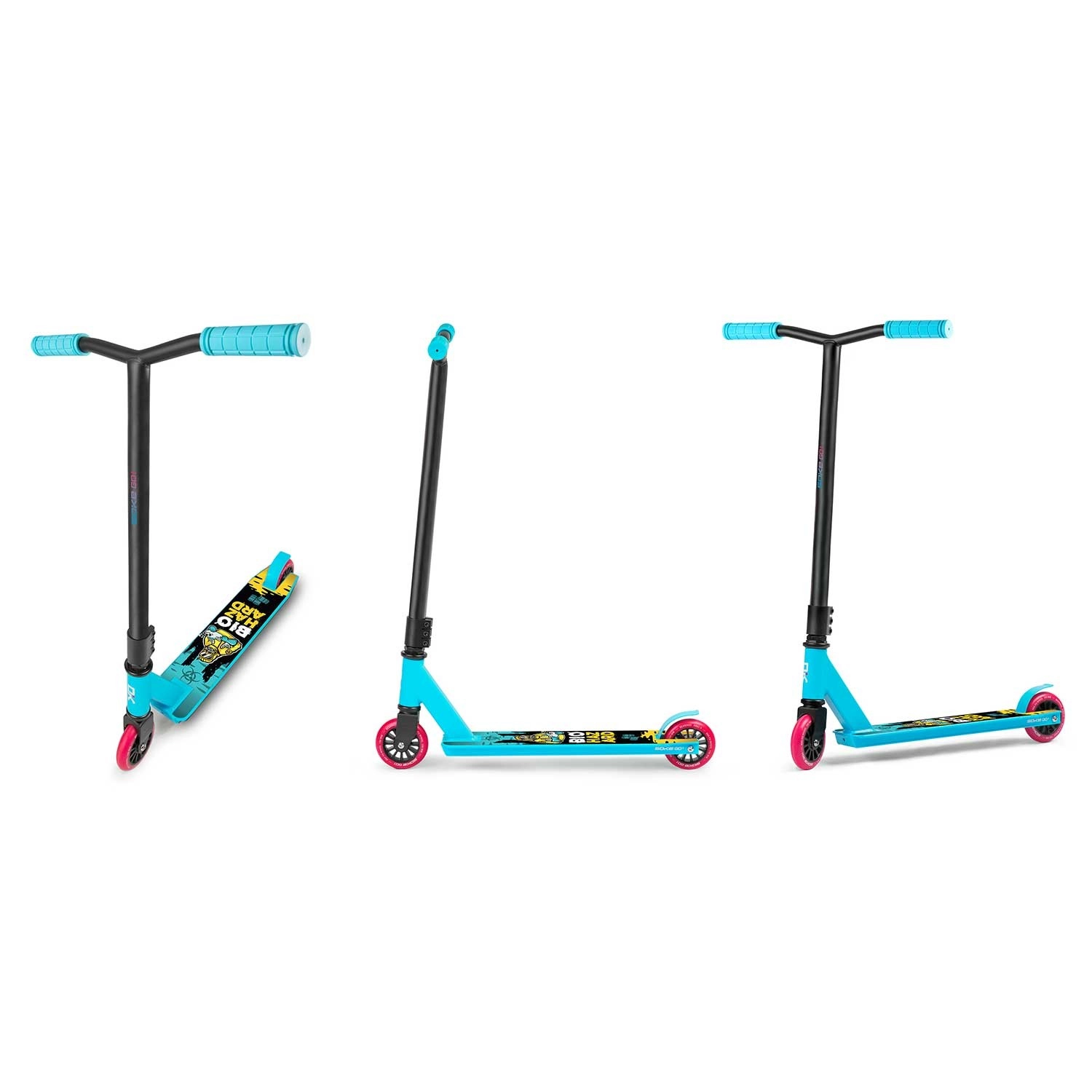 Model SOKE GO! u tirkiznoj boji dizajniran je za sigurnost pri trikovima, brzu akceleraciju i dugi vijek trajanja. Široka Y upravljača s udobnim TPR gripovima 145 mm daju izvrsnu stabilnost, dok krut aluminijski trostruki stezač drži sve čvrsto na okupu. Niska masa od 2,9 kg pomaže pri whipovima i spinovima.