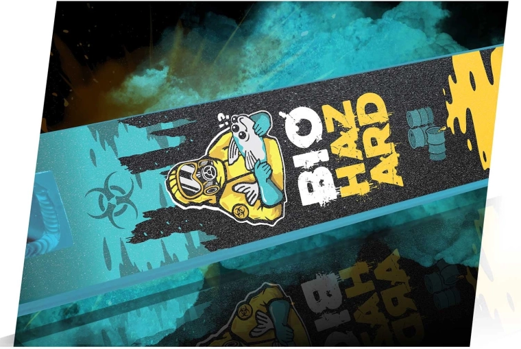 Deck peg-cut (48 x 10 cm) spreman je za pegove i ima jednodijelnu konstrukciju s kvalitetnim zavarenim šavovima. Ležajevi ABEC-9 s kromiranim čelikom i gumenim brtvama osiguravaju gladak hod i zaštitu od prašine i vode. PU kotači 100 x 24 mm, tvrdoća 88A s užim profilom za višu brzinu i spoked jezgrom odlično prigušuju sitne vibracije i drže liniju.