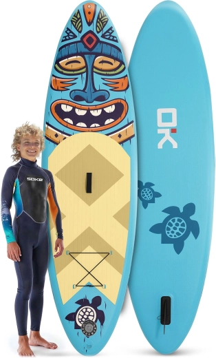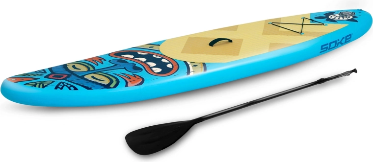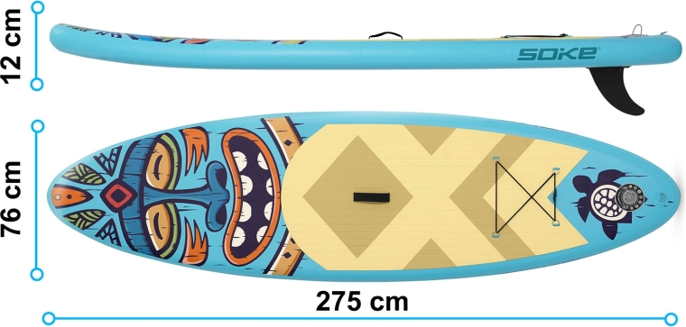 Otkrijte lagan i stabilan nafukovací paddleboard Soke za djecu, tinejdžere i lakše odrasle. Kompletan set uključuje sve što trebate: podesivo veslo, dvočinsku pumpu s manometrom, sigurnosni leash, odvojivu peraju, naslonjačko sjedalo, set za popravak i izdržljiv ruksak. Protuklizna EVA podloga, drop-stitch konstrukcija i prednji bungee sustav za udoban prijevoz stvari jamče zabavu i sigurnost na vodi.