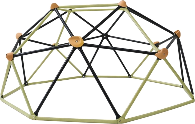 Dječja penjalica u obliku kupole za vrt nudi stabilnu, izdržljivu i sigurnu konstrukciju za aktivnu igru na otvorenom. Geodetska konstrukcija od čeličnih cijevi s praškastim premazom i protukliznim hvatištima potiče razvoj snage, koordinacije i ravnoteže. Jednostavno se postavlja na travu, pijesak ili drugu ravnu podlogu, bez potrebe za sidrenjem.