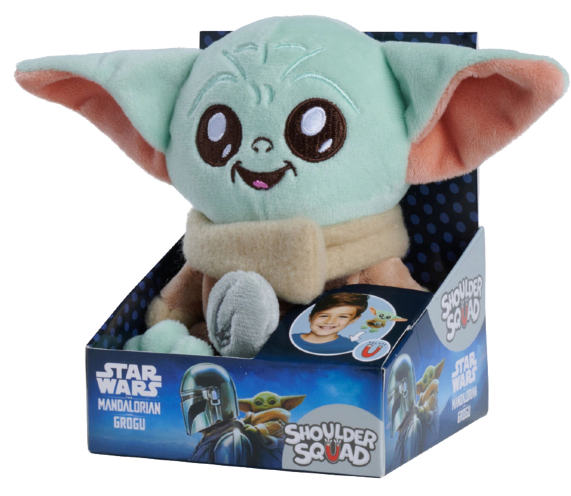 Pričvrstite svog omiljenog junaka na rame i krenite u avanturu! Plišana figurica Grogu (Baby Yoda) iz STAR WARS: The Mandalorian dizajnirana je tako da magnetskim sustavom pričvršćivanja udobno i sigurno “sjedi” na vašem ramenu. Dovoljno je umetnuti magnet ispod odjeće i postaviti plišanca odozgo.