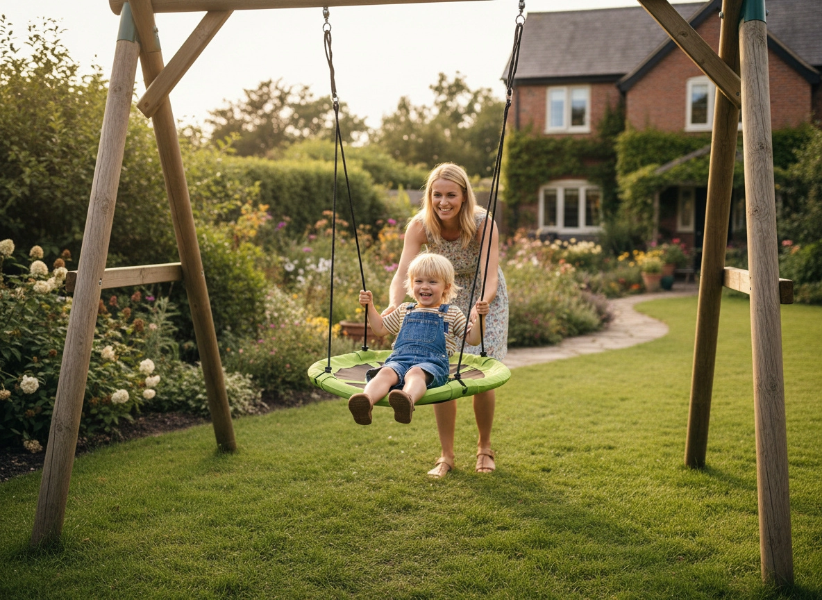 Kompatibilna s uobičajenim A-okvirima i vješanjem u vrtu. Čvrsto pričvršćivanje i stabilnost za sigurnu vanjsku igru.