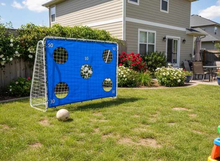 Vježbajte šut i zabavljajte se kao profesionalci. Ovaj robusni nogometni gol s mrežom i ciljnom ceradom nudi velike dimenzije, stabilnu čeličnu konstrukciju i brzu montažu – idealno za vrt, igralište i dvorište, za djecu i odrasle.