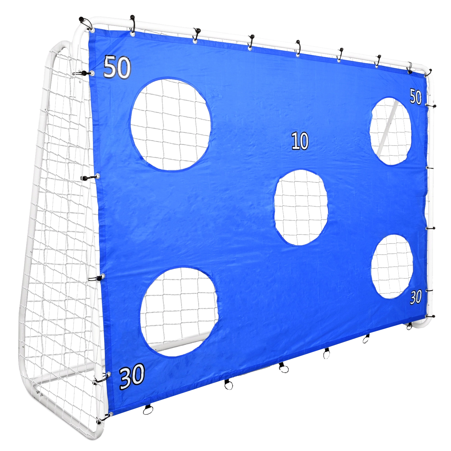 Poboljšajte preciznost i snagu udaraca uz priloženu ciljnu ceradu s otvorima koja će svaki trening pretvoriti u natjecanje. Čelični okvir s debljostjenim cijevima i klinovima za tlo osigurava stabilnost, dok kvalitetna mreža sigurno zaustavlja lopte.