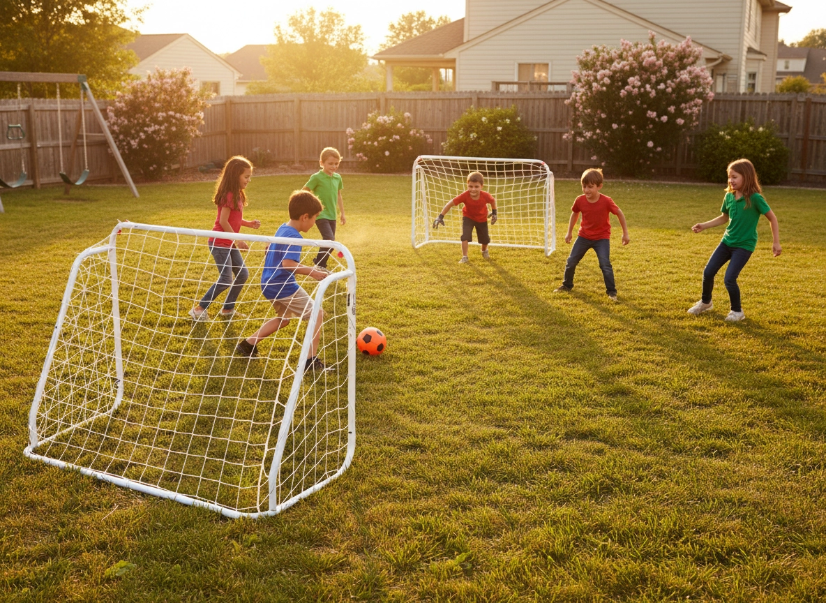 Set dvaju prijenosnih nogometnih golova nudi sjajnu zabavu za djecu i odrasle. Lagana, ali stabilna konstrukcija s promjerom cijevi 28 mm i izdržljiva mreža od tropramenog užeta podnose vanjske uvjete i čestu uporabu. Dimenzije 124 × 96 × 61 cm idealne su za male utakmice, tehničke vježbe i brze igre u vrtu.