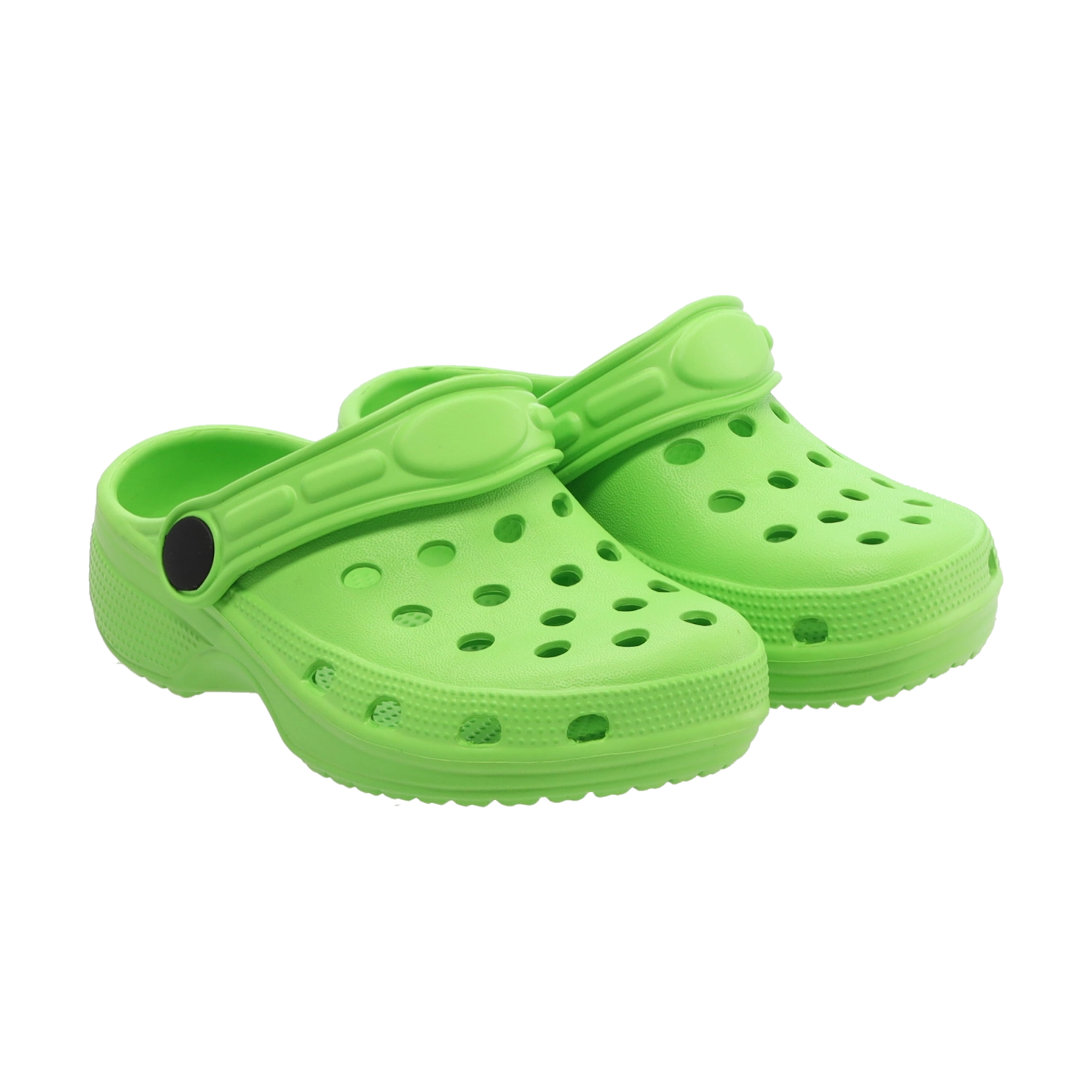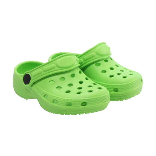 Lagane dječje kroksice od izdržljive EVA pjene nude minimalnu težinu, otpornost na vodu i trošenje te zahvaljujući ventilacijskim otvorima i izvrsnu prozračnost. Profilirani potplat osigurava udobnost i siguran korak, dok obostrani remen za petu pouzdano drži obuću na nozi. Lako se čiste i idealne su za svakodnevno nošenje u vrtu, kod kuće i na odmoru.
