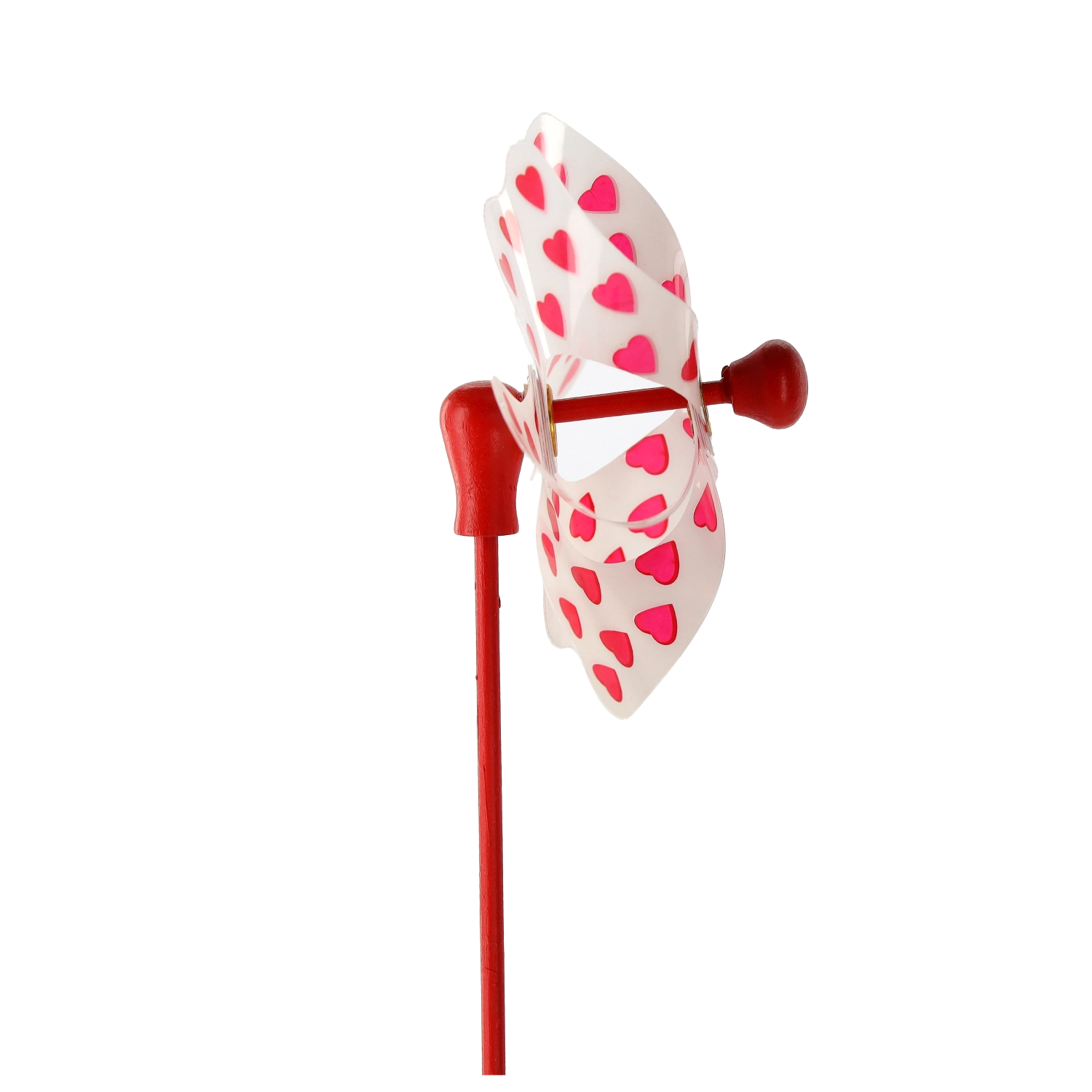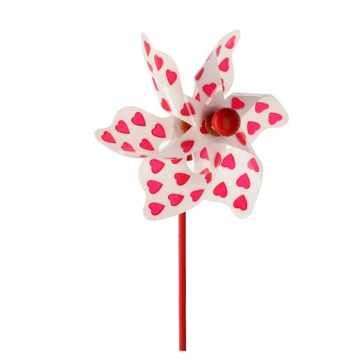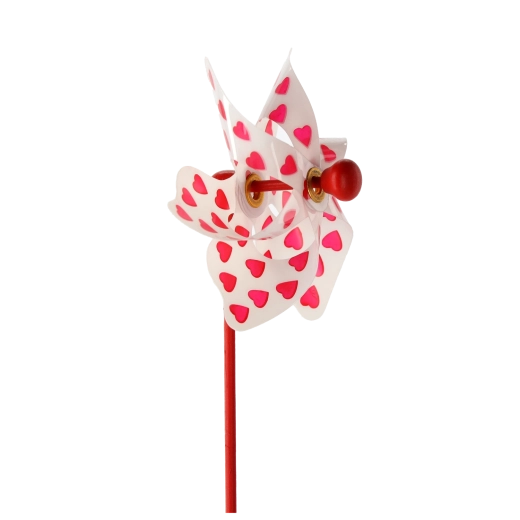Ova šarmantna vjetrenjača sa srcima donosi razigrani štih i vizualni efekt pri svakom dašku vjetra. Zahvaljujući laganoj plastičnoj konstrukciji i bambusovom štapiću lako se postavlja u zemlju, pijesak ili dekorativne aranžmane.