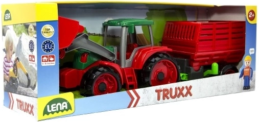 Predstavljamo vam Lena Truxx traktor s prikolicom, idealnu igračku za male farmere. Ovaj plastični traktor ističe se svojim robusnim dizajnom u crvenoj i zelenoj boji, koji je dopunjen funkcionalnom žlicom i odvojivom prikolicom. U kabini traktora nalazi se mala figura vozača koja dodaje igri na realističnosti.