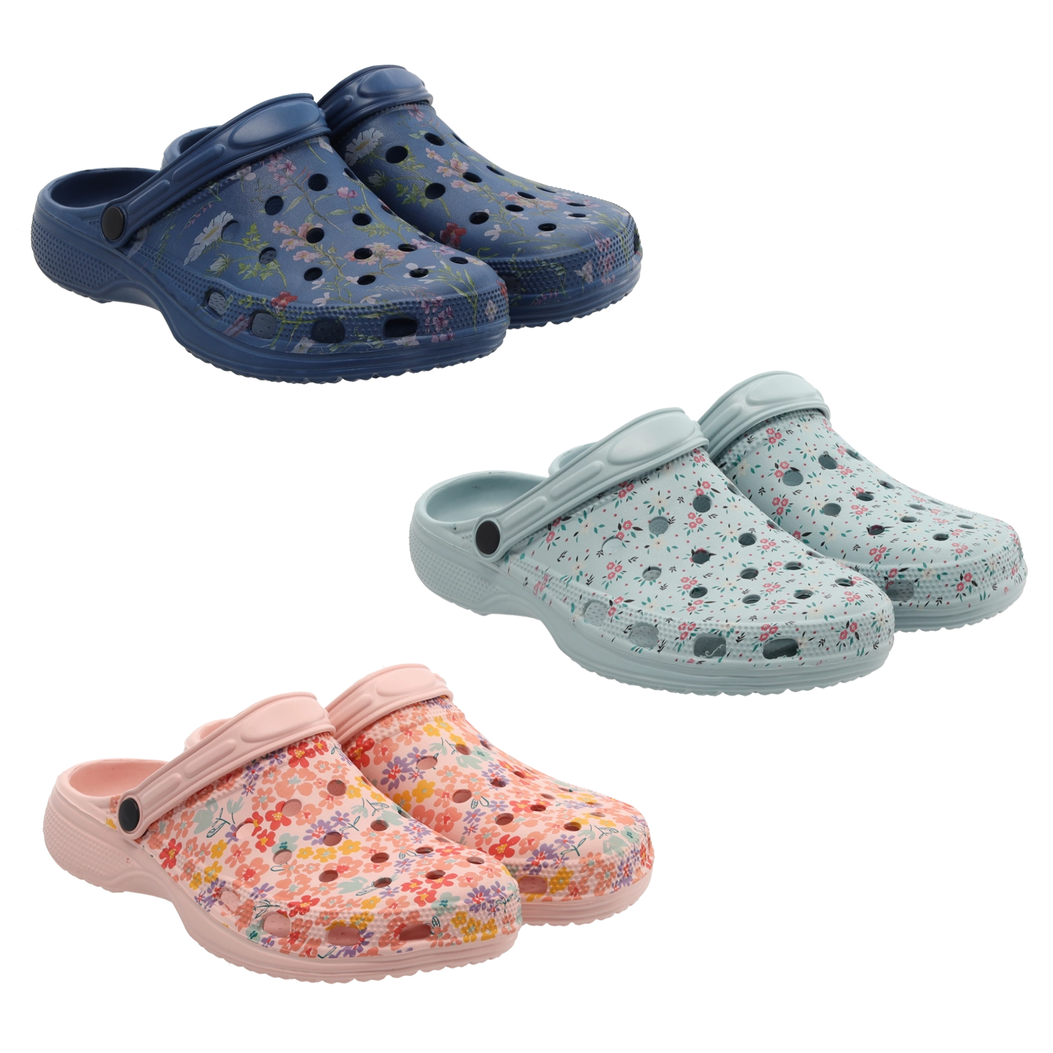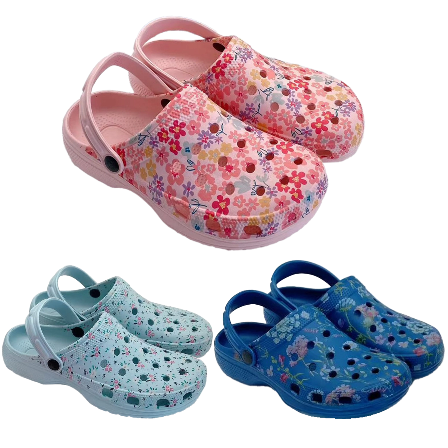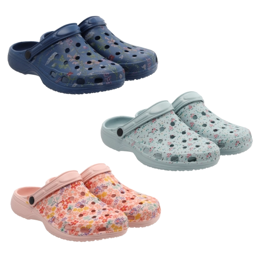 Laganе i udobnе ženske natikače s cvjetnim uzorkom od EVA materijala idealne su za vrt, plažu i svakodnevno nošenje. Nude vodootpornost, brzo sušenje i odlično provjetravanje zahvaljujući otvorima na gornjištu. Profilirani uložak s nježnim udubinama povećava stabilnost i udobnost, dok pomični remen omogućuje varijabilno nošenje – preko pete za bolju fiksaciju ili slobodno za lako obuvanje.
