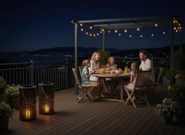 Minimalistička crna izvedba s drvenim letvicama naglašava atmosferu doma i terase te se lako kombinira s ostalim dekoracijama.
