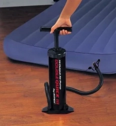 Ručna pumpa Intex Double Quick III je izdržljiva i stabilna dvostruko-djelujuća pumpa koja brzo napuhuje madrace, čamce i druge napuhujuće proizvode. Zahvaljujući dvostrukom radu – pri pritisku i podizanju pruža veći protok zraka i ubrzava napuhavanje bez napora. Stabilna osnovna podloga i univerzalna 3 nastavka olakšavaju uporabu kod kuće i na putu.