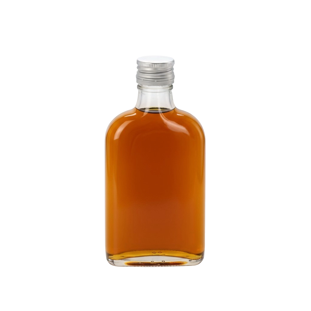Kompaktna staklena boca zapremnine 200 ml idealna je za domaće likere, vina i destilate. Zahvaljujući plosnatom obliku lako stane u džep ili torbu, a prozirno staklo daje piću elegantan izgled. Tijesni metalni navojni čep štiti sadržaj, dostupan je u različitim bojama, a kvalitetna izrada jamči izdržljivost i višekratnu upotrebu.