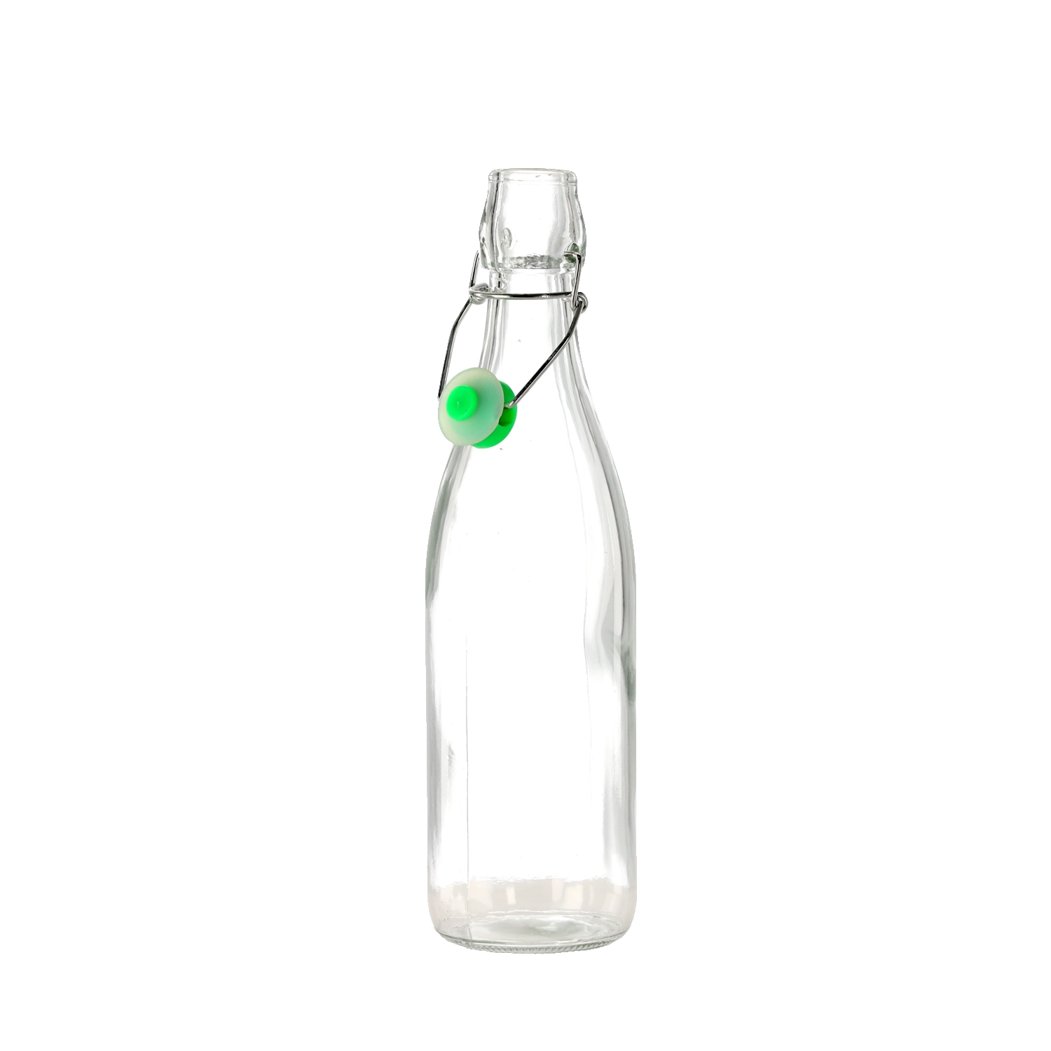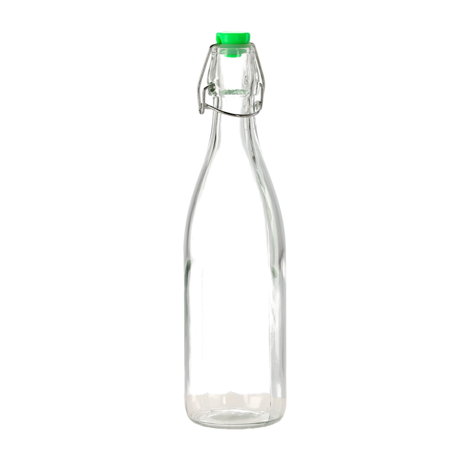 Praktična staklena boca zapremine 0,5 l s mehaničkim zatvaračem za sigurno i elegantno čuvanje domaćih sokova, ulja ili likera. Hermetičko zatvaranje održava sadržaj dulje svježim, prozirno staklo olakšava kontrolu količine, a ponovna upotreba podržava ekološki pristup u kućanstvu.