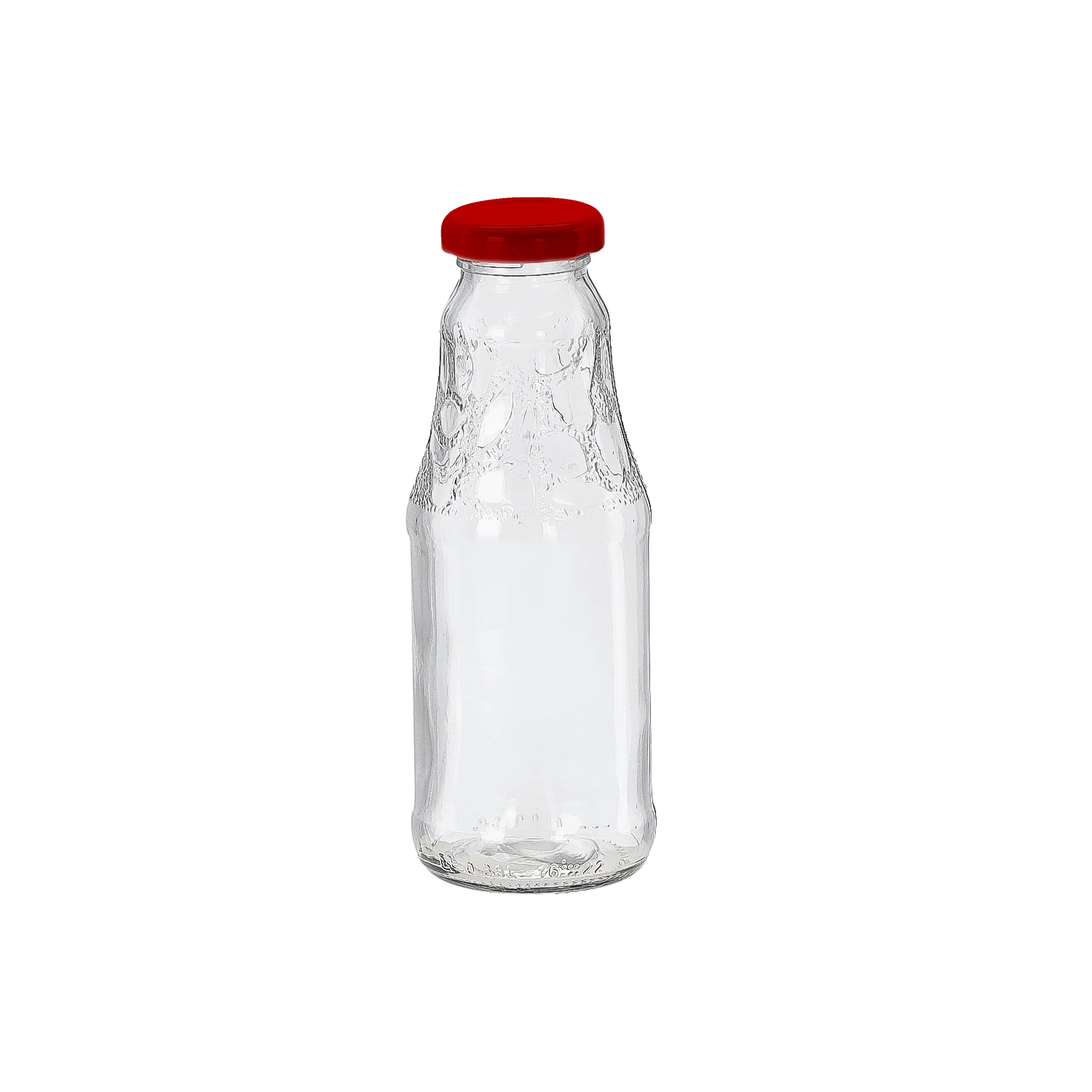 Praktična staklena boca zapremnine 330 ml s čepom 38 mm idealna je za domaće sokove, sirupe i piree. Izdržljivo prozirno staklo omogućuje kontrolu sadržaja, ergonomski oblik osigurava udobno rukovanje, a nepropustan čep sprječava istjecanje tekućine. Prikladna za pasterizaciju i pranje u perilici posuđa.