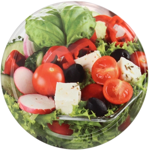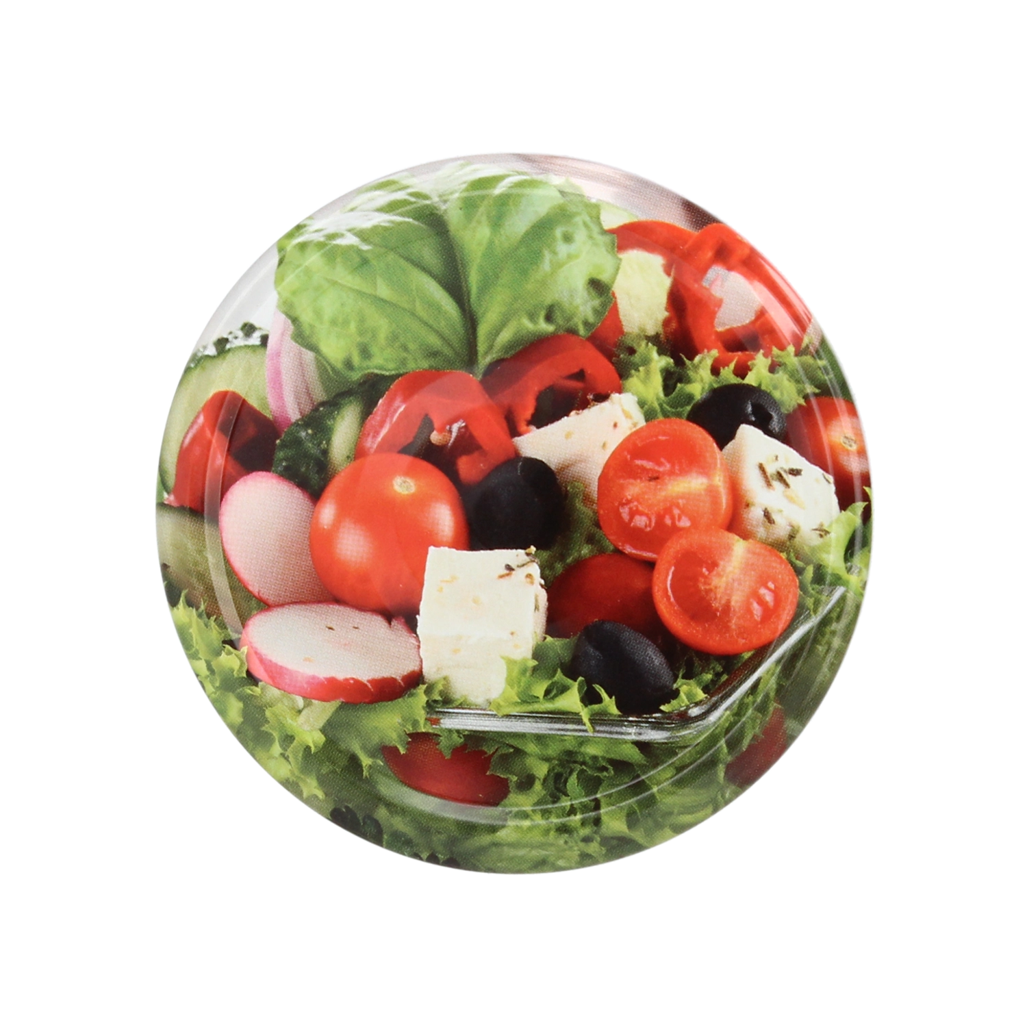 Estetski šareni tisak s motivom povrća ne samo da ukrašava vaše staklenke, već i olakšava pregled i identifikaciju sadržaja u smočnici. Poklopci su namijenjeni višekratnoj uporabi nakon temeljitog pranja i udovoljavaju zahtjevima za kontakt s hranom.