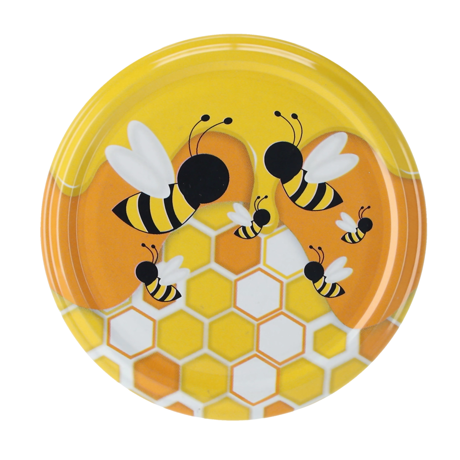 Ovi poklopci odličan su izbor za pčelare, male proizvođače i kućnu pripremu zimnice. Grafika s pčelicom privlači pažnju i pomaže istaknuti vaš proizvod na polici.