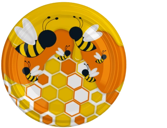 Elegantni poklopci veličine fi66 pouzdano brtve staklenke s medom, džemovima ili ukiseljenim povrćem. Dekor s pčelicom daje vašim proizvodima atraktivan izgled i podupire njihovu prodajnost na policama i na tržnicama.