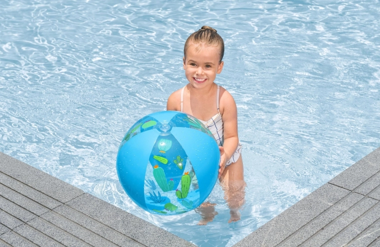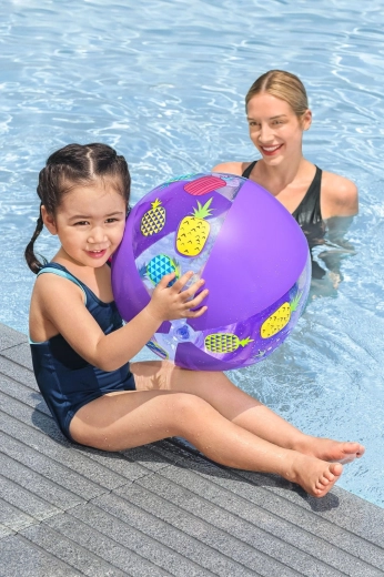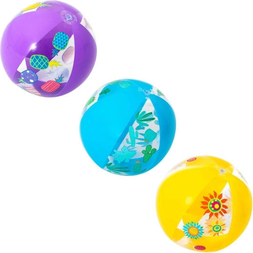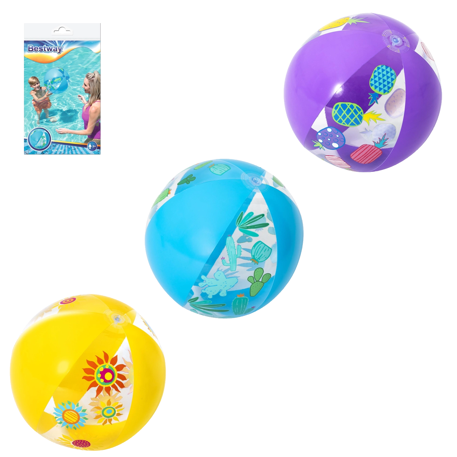 Napuhavajuća lopta BESTWAY promjera 51 cm savršen je izbor za vodene igre, aktivnosti na plaži i ljetne odmore. Zahvaljujući laganoj konstrukciji od izdržljivog PVC-a lako se prenosi, brzo napuhuje i odlično pluta na površini. Prozirni paneli s šarenim tropskim tiskom (voće, cvijeće, kaktusi) svakoj igri dodaju šarm.