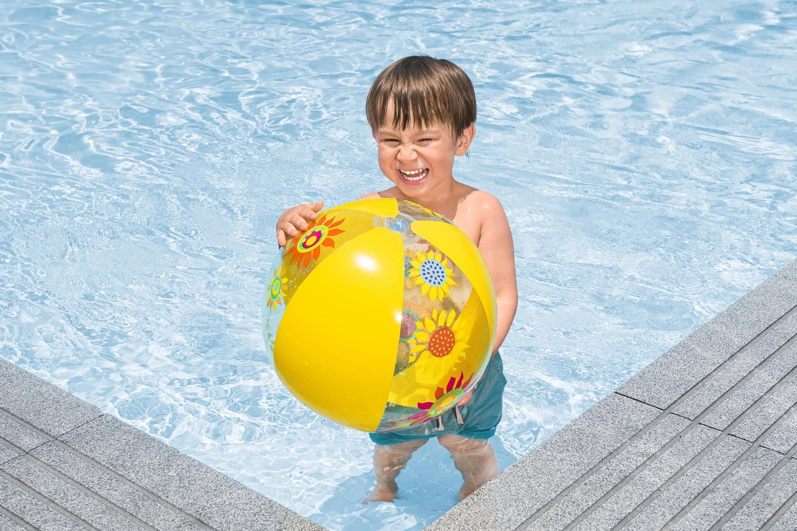 Uživajte u ljetu s napuhavajućom plažnom loptom BESTWAY promjera 51 cm. Laka, izdržljiva i idealna za bazen i plažu. Zahvaljujući sigurnosnom ventilu i prethodno testiranom vinilu nudi pouzdanu zabavu za djecu i odrasle. Tri sjajna tropska motiva osiguravaju odličnu vidljivost u vodi.