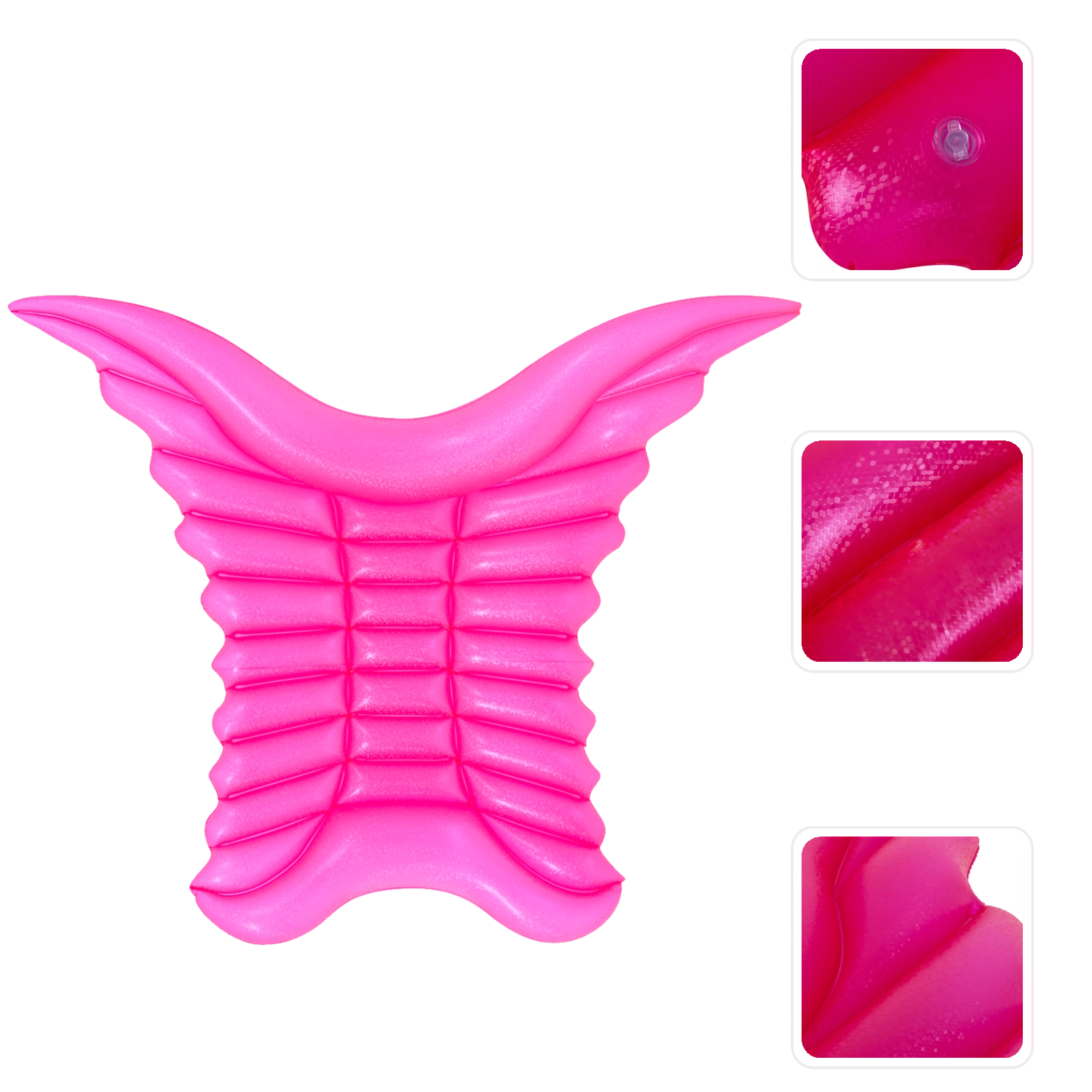 Napuhljiva madraca Anđeoska krila pretvara svako kupanje u zabavno i fotogenično iskustvo. Zahvaljujući velikodušnim dimenzijama udobno ćete se odmoriti uz vodu i na plaži, dok tri odvojene komore povećavaju stabilnost i sigurnost. Površina od izdržljivog vinila odolijeva uobičajenoj upotrebi i lako se čisti.
